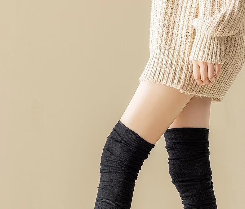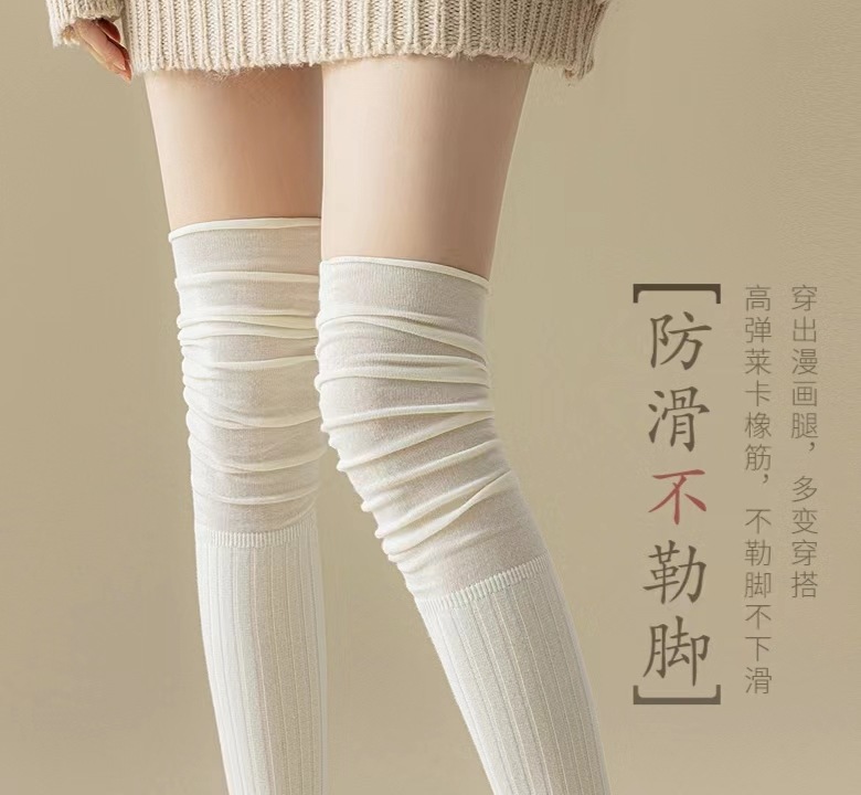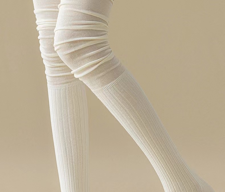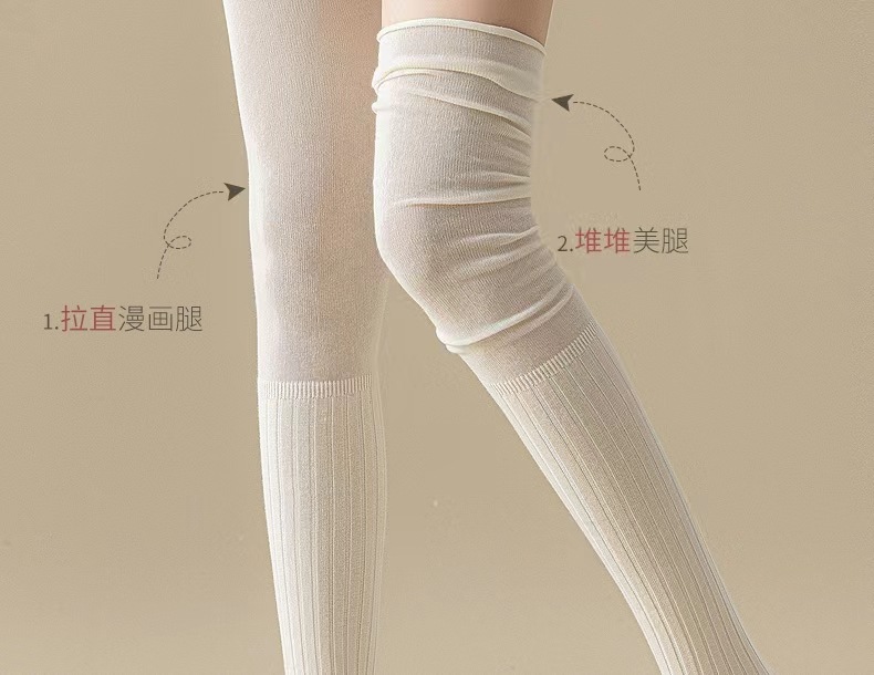 가을과 겨울 우유 화이트 스타킹 여성 카키 높은 스타킹 베이지 허벅지 스타킹 일본 스타일 바느질 오버 더 무릎 스타킹