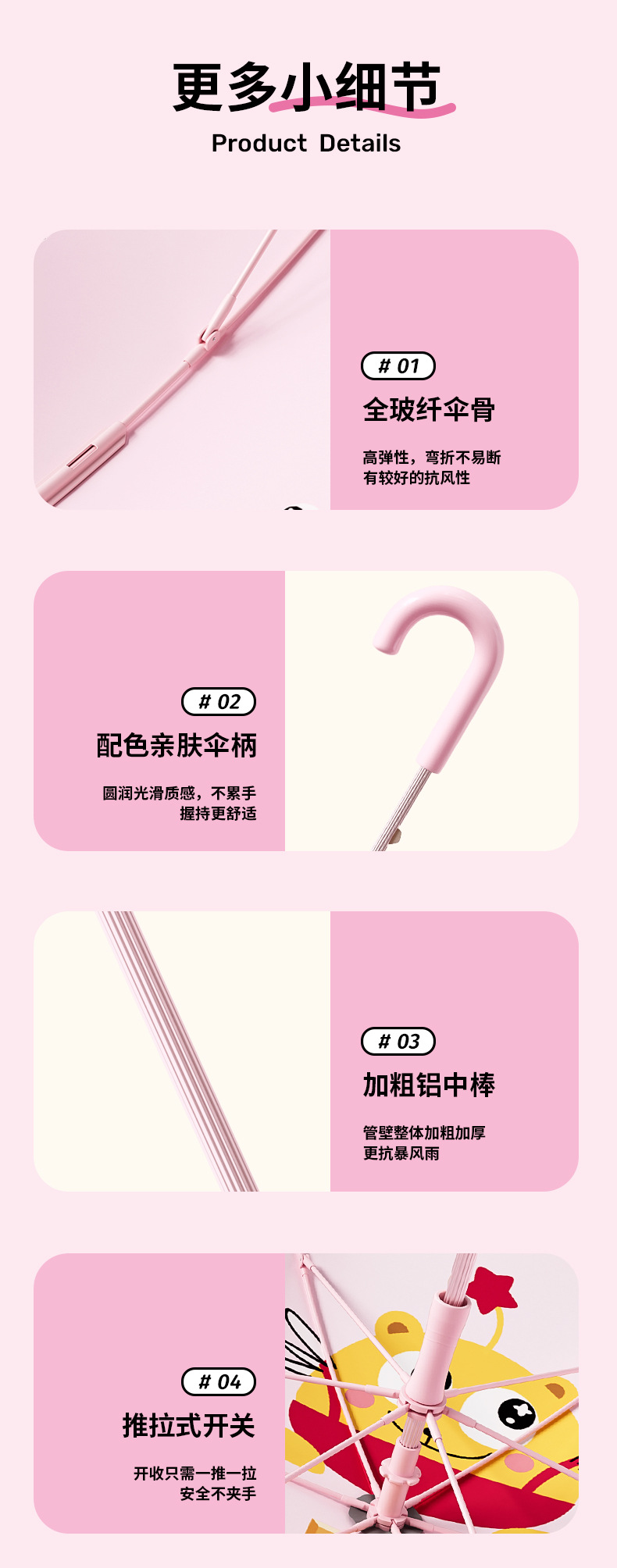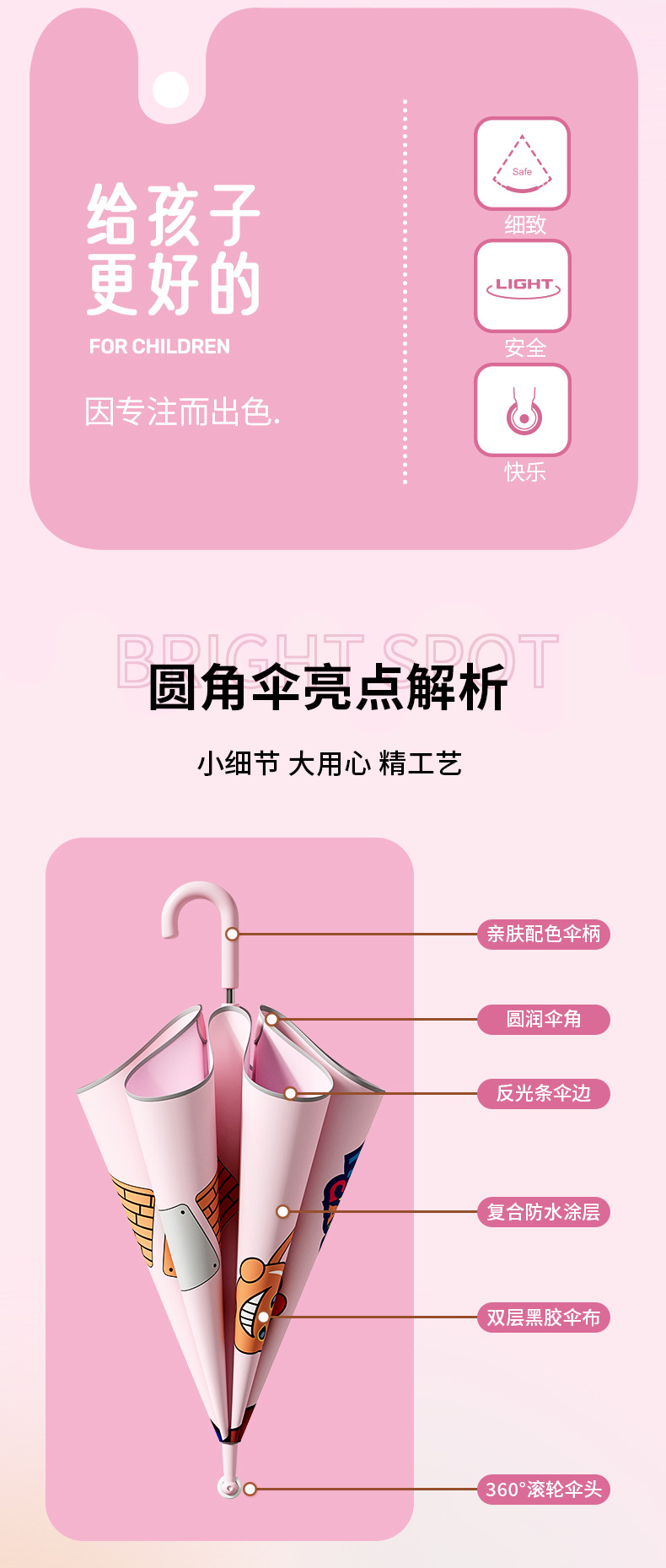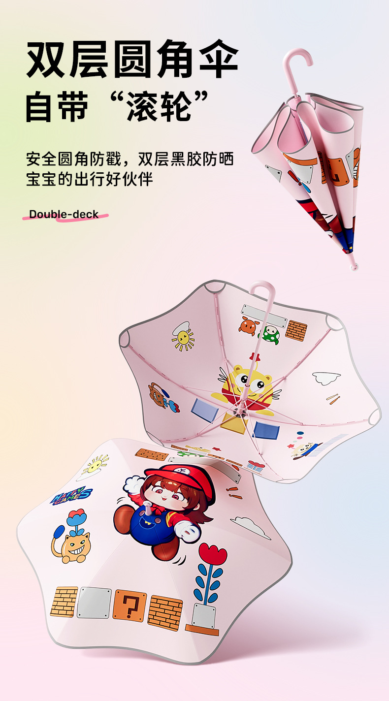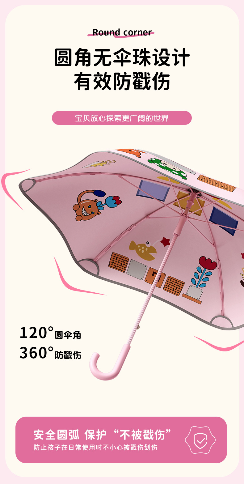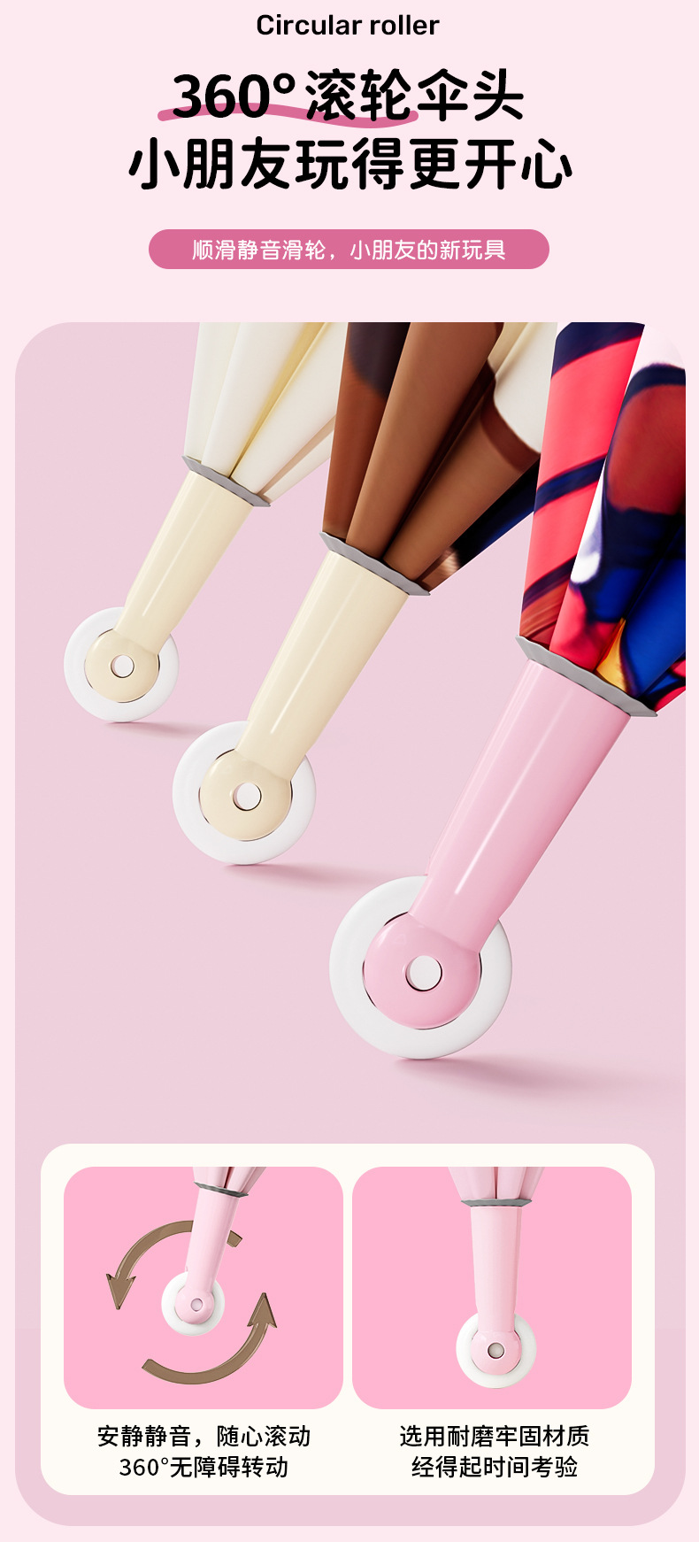 개인화되고 창의적인 둥근 모서리의 새로운 긴 손잡이 접이식 어린이 우산 롤러 디자인 초등학생용 비 또는 빛 우산을 위한 국경 간 특별 공급