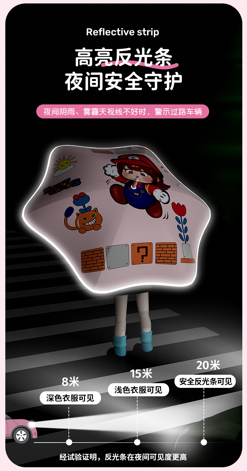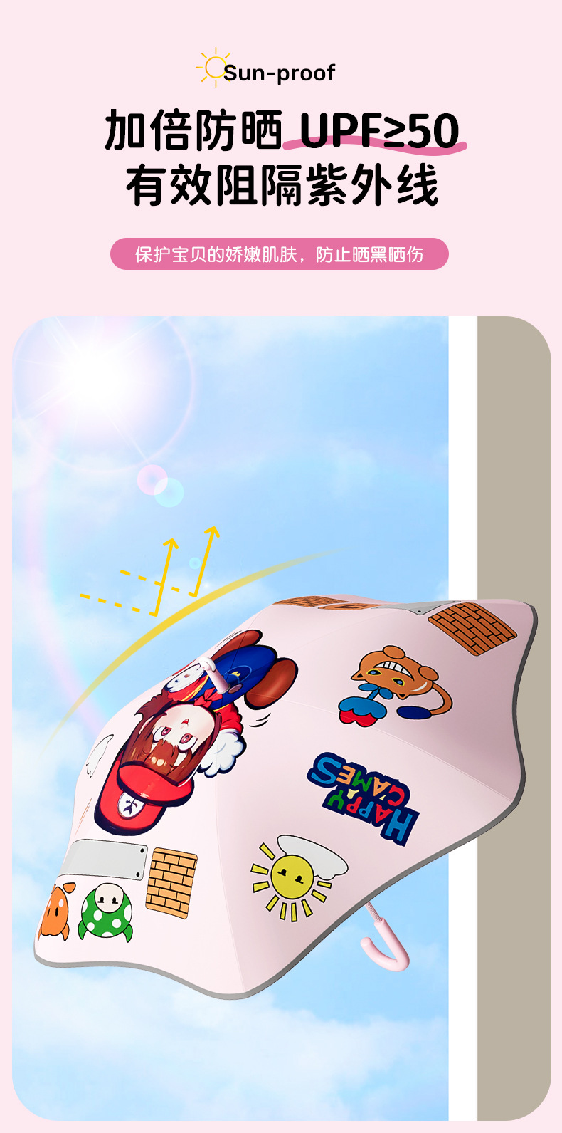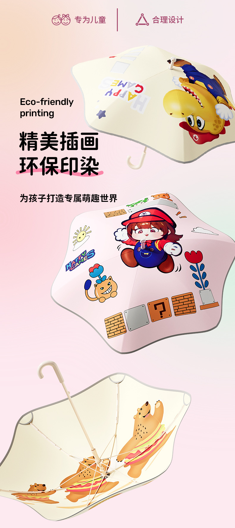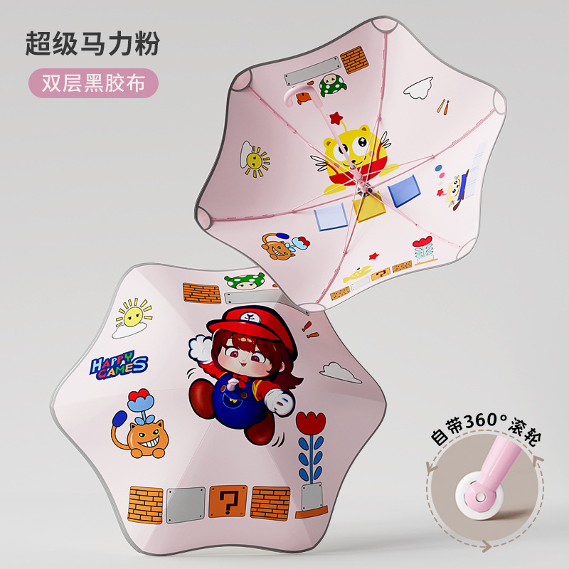 개인화되고 창의적인 둥근 모서리의 새로운 긴 손잡이 접이식 어린이 우산 롤러 디자인 초등학생용 비 또는 빛 우산을 위한 국경 간 특별 공급스토어 가기