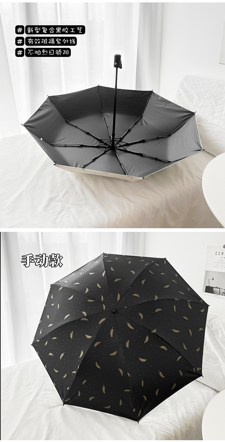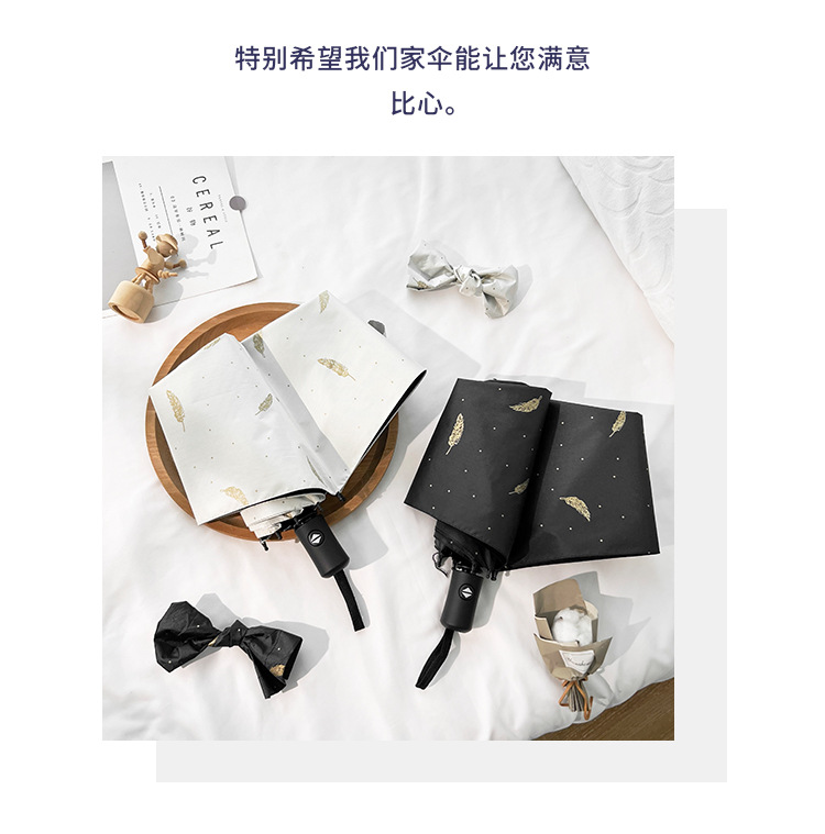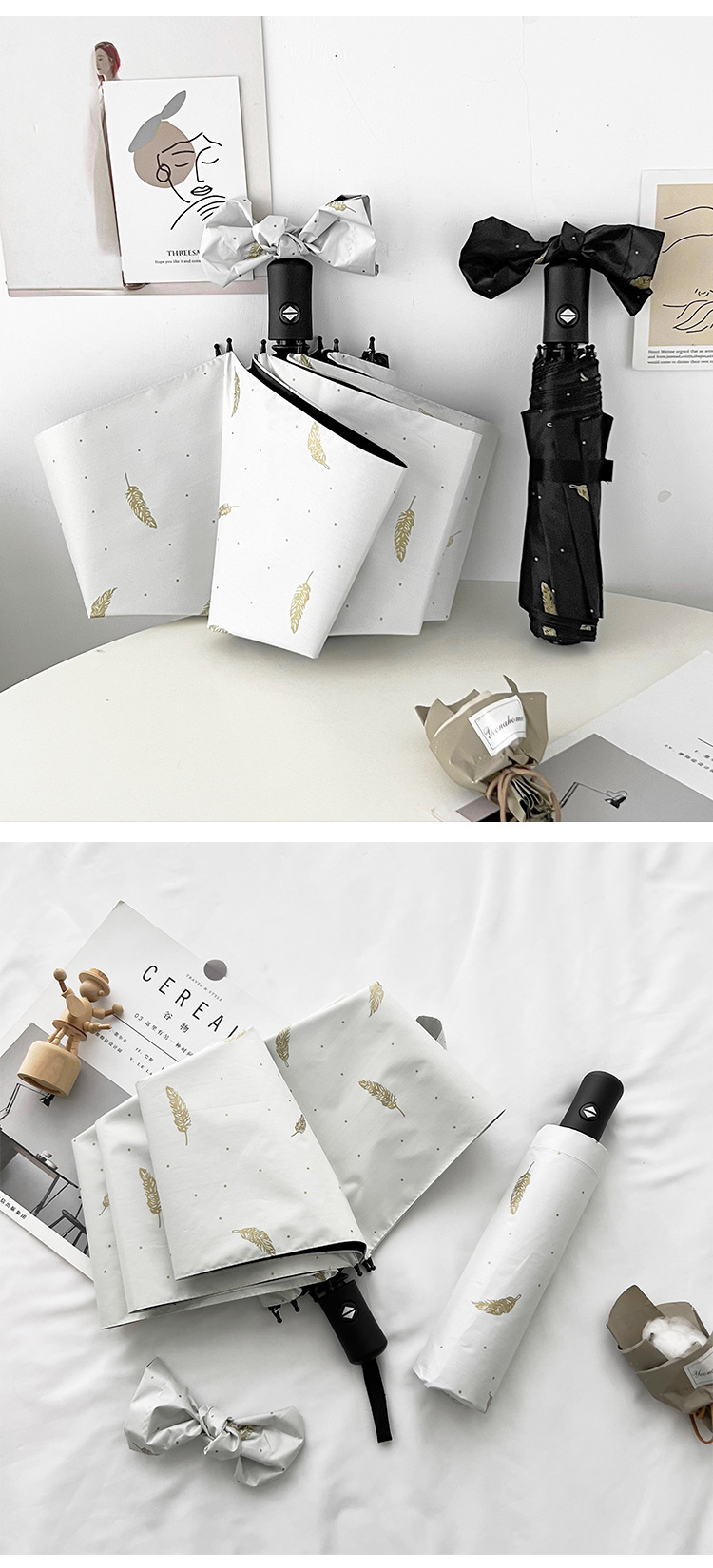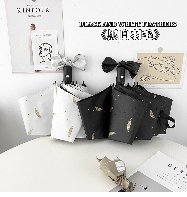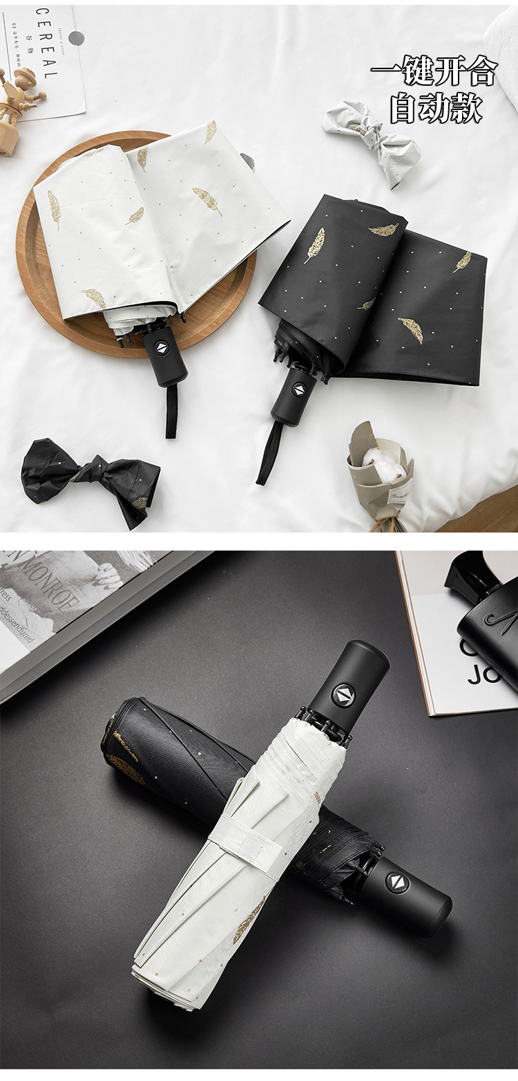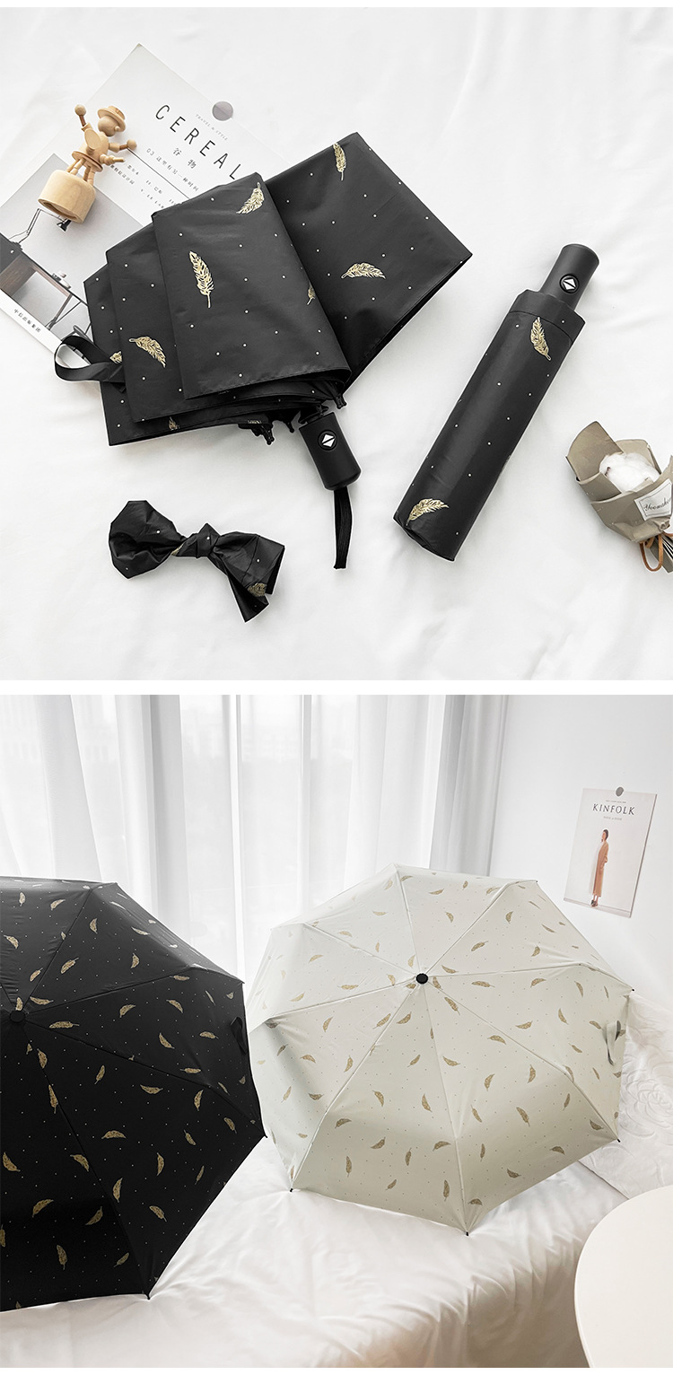 작은 신선한 깃털 우산 여성의 고급 감각 태양 우산 태양 보호 UV 보호 맑고 비 이중 목적 완전 자동