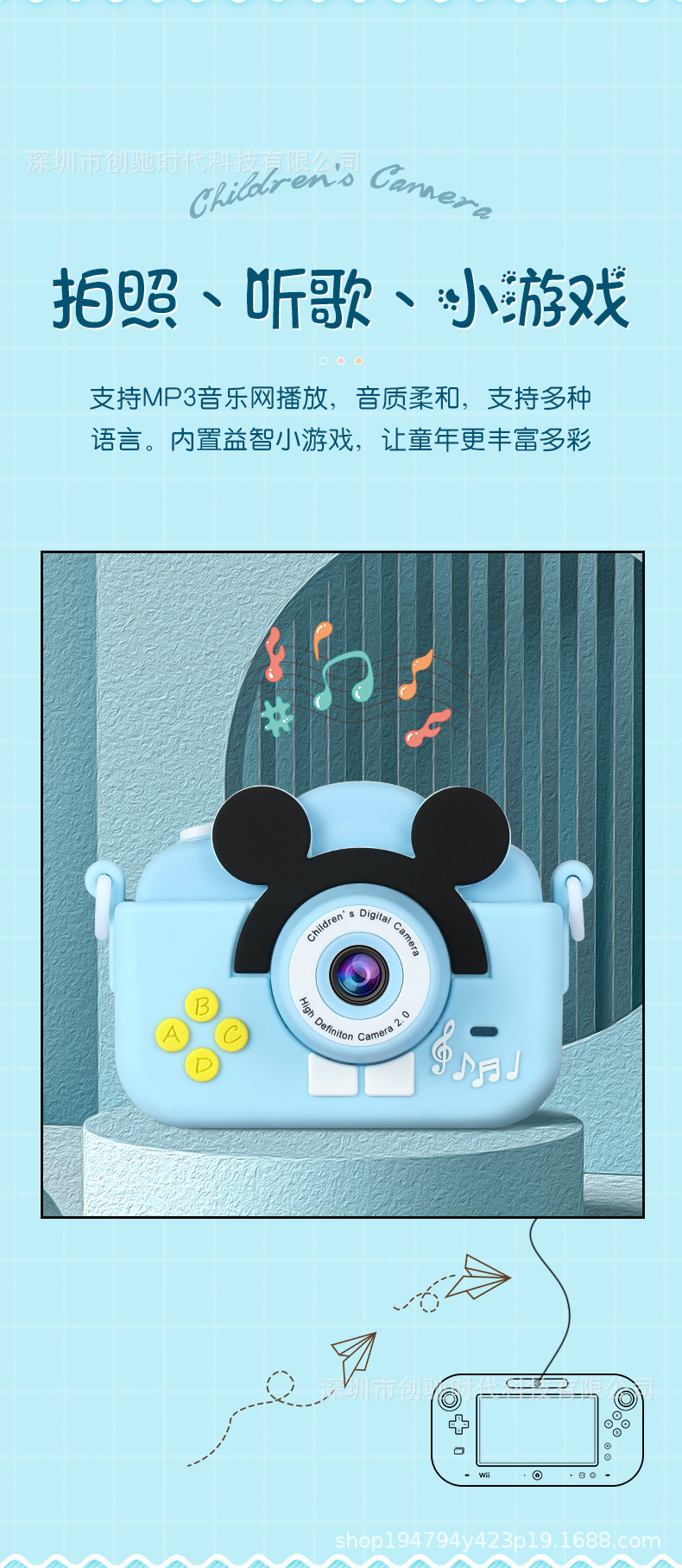 국경을 넘는 새로운 어린이 카메라는 유니콘 만화 디지털 미니 A5 HD 더블 카메라 장난감 선물 사진을 찍을 수 있습니다.스토어 가기