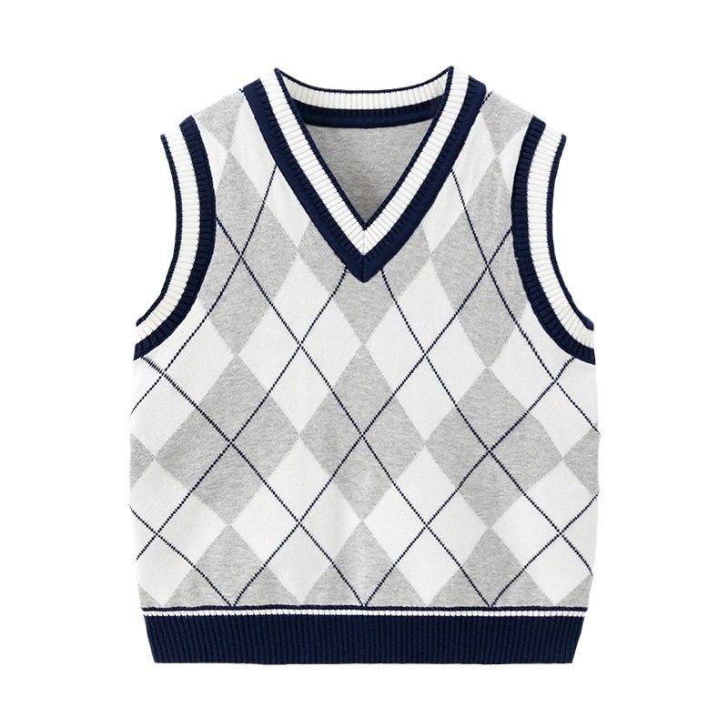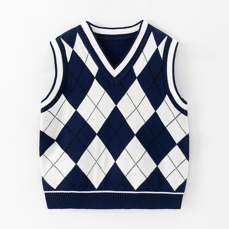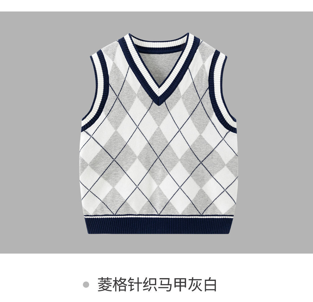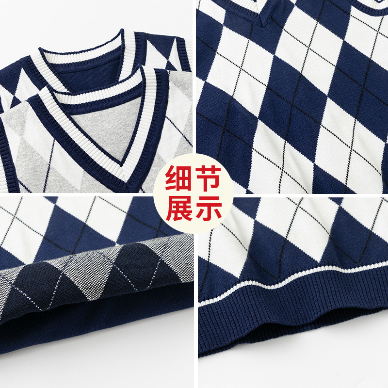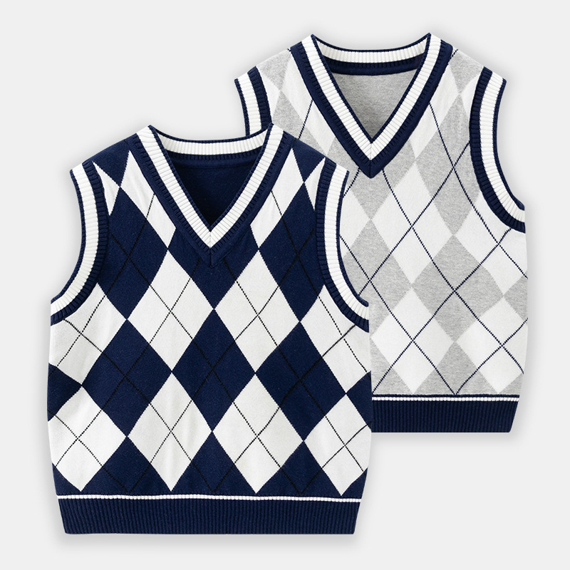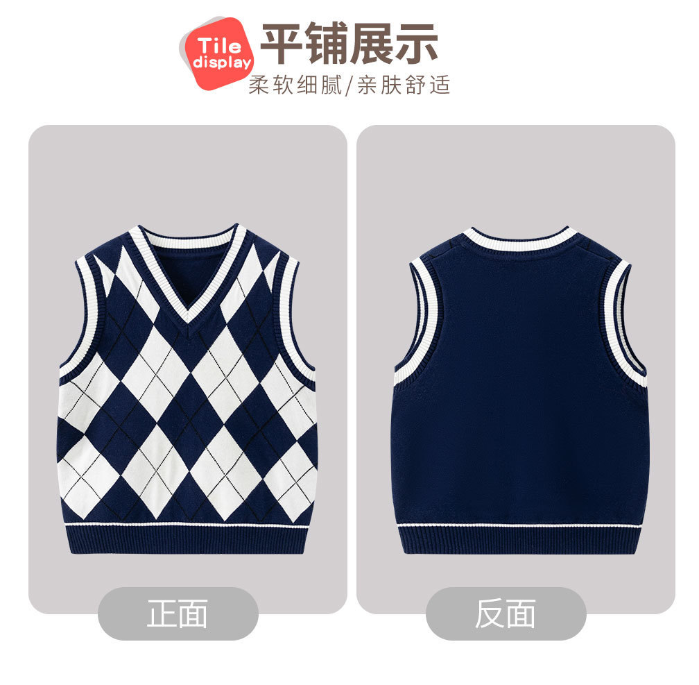도매 남아용 이중 레이어 스웨터 조끼 두꺼운 2025 봄 가을 중대형 아동 캐주얼 영국 스타일 조끼 따뜻하고 트렌디함스토어 가기