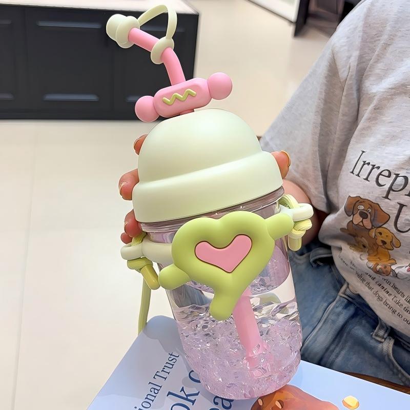 소녀를위한 밀짚 컵 선물 2025 새로운 스테인레스 스틸 절연 컵 높은 외관 대용량 휴대용 대각선 컵