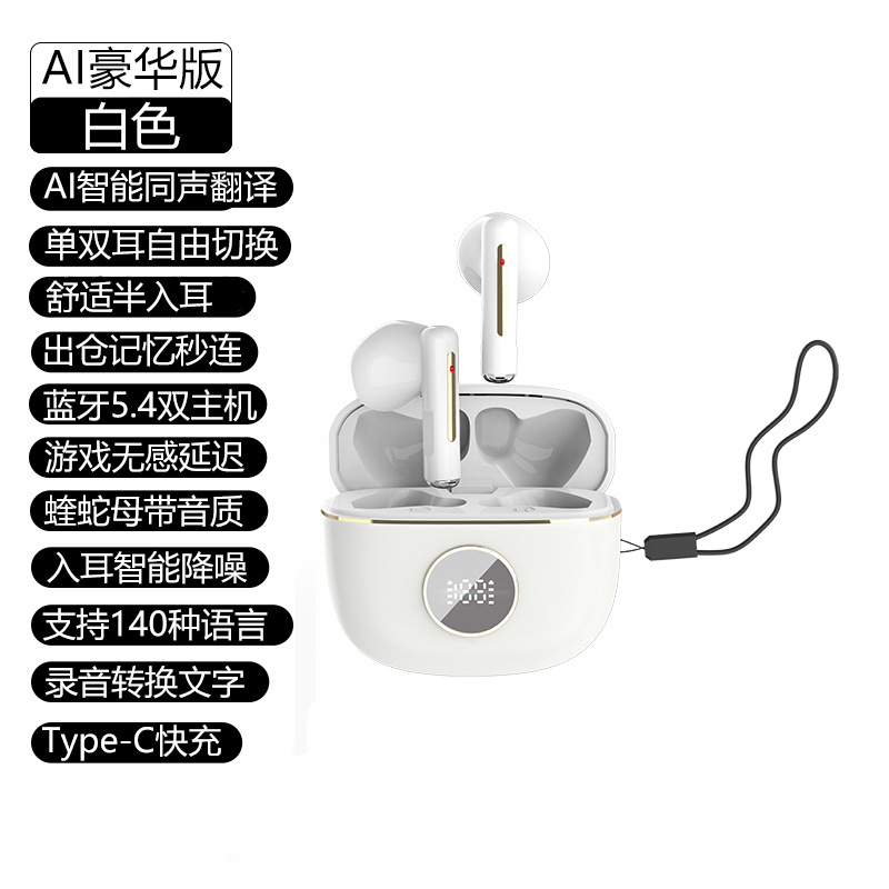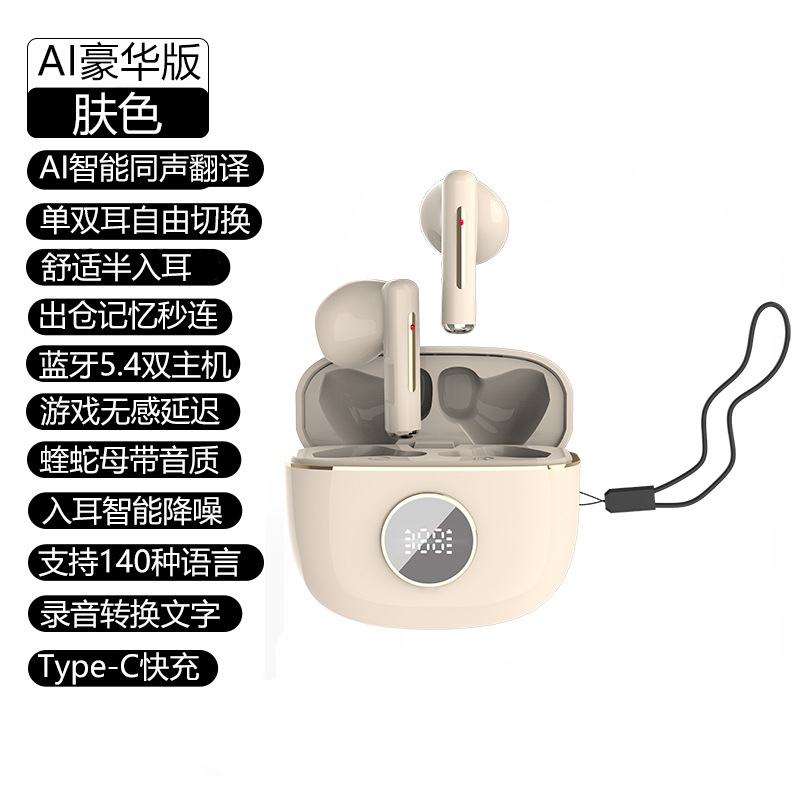 새로운 AI 지능형 동시 번역 이어폰 무선 듀얼 이어 미니 디지털 디스플레이 TWS 스테레오 5.3 블루투스 이어폰