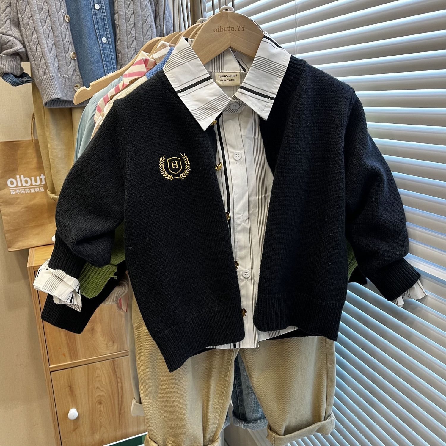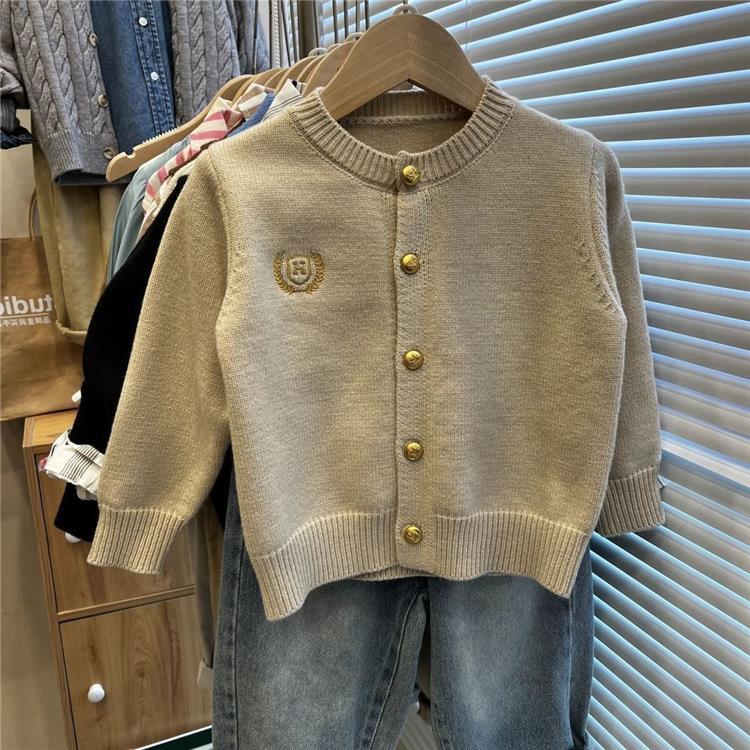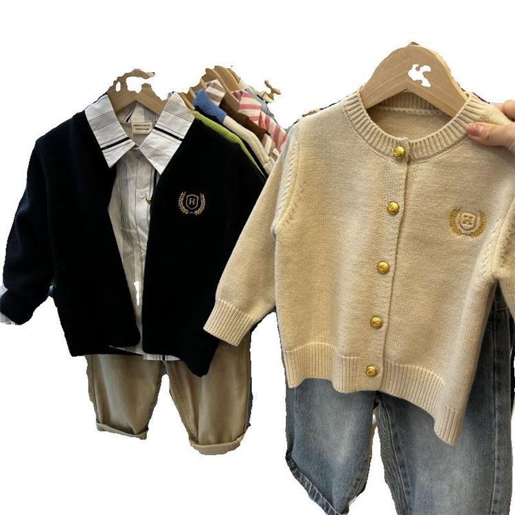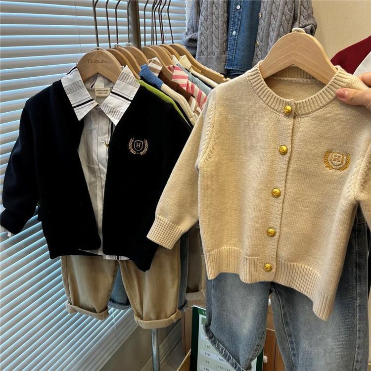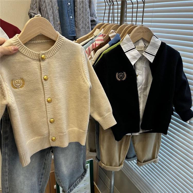 부드럽고 밀랍 같은 아동복 2025 가을, 겨울 새로운 문자 수 놓은 모직 스웨터 소년과 소녀 대학 스웨터 카디건 재킷스토어 가기
