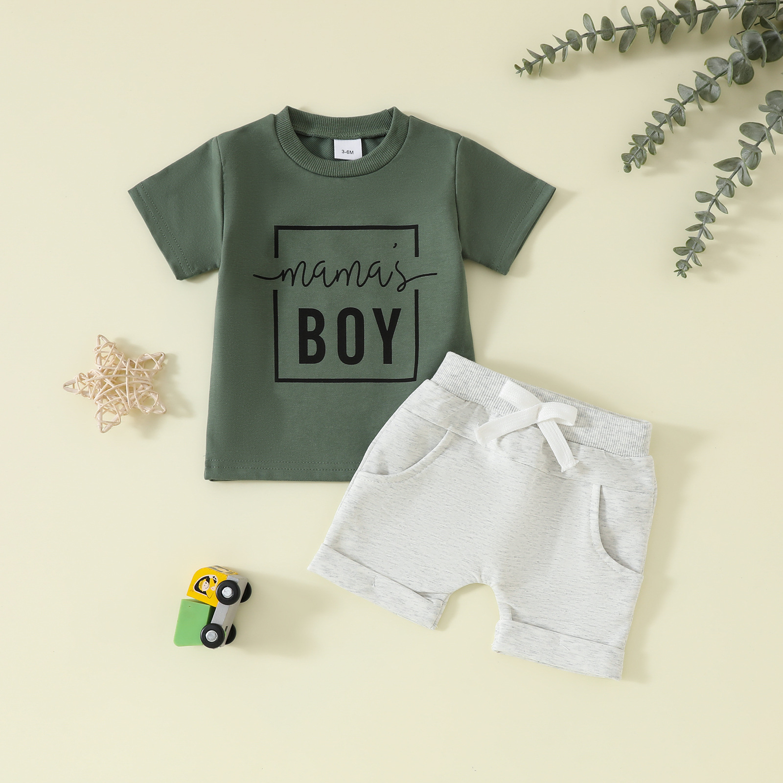 아기 소년 아동복 유럽과 미국 인쇄 풀오버 아마존 어린이 여름 패션 둥근 목 단색 짧은 소매 포켓 반바지스토어 가기