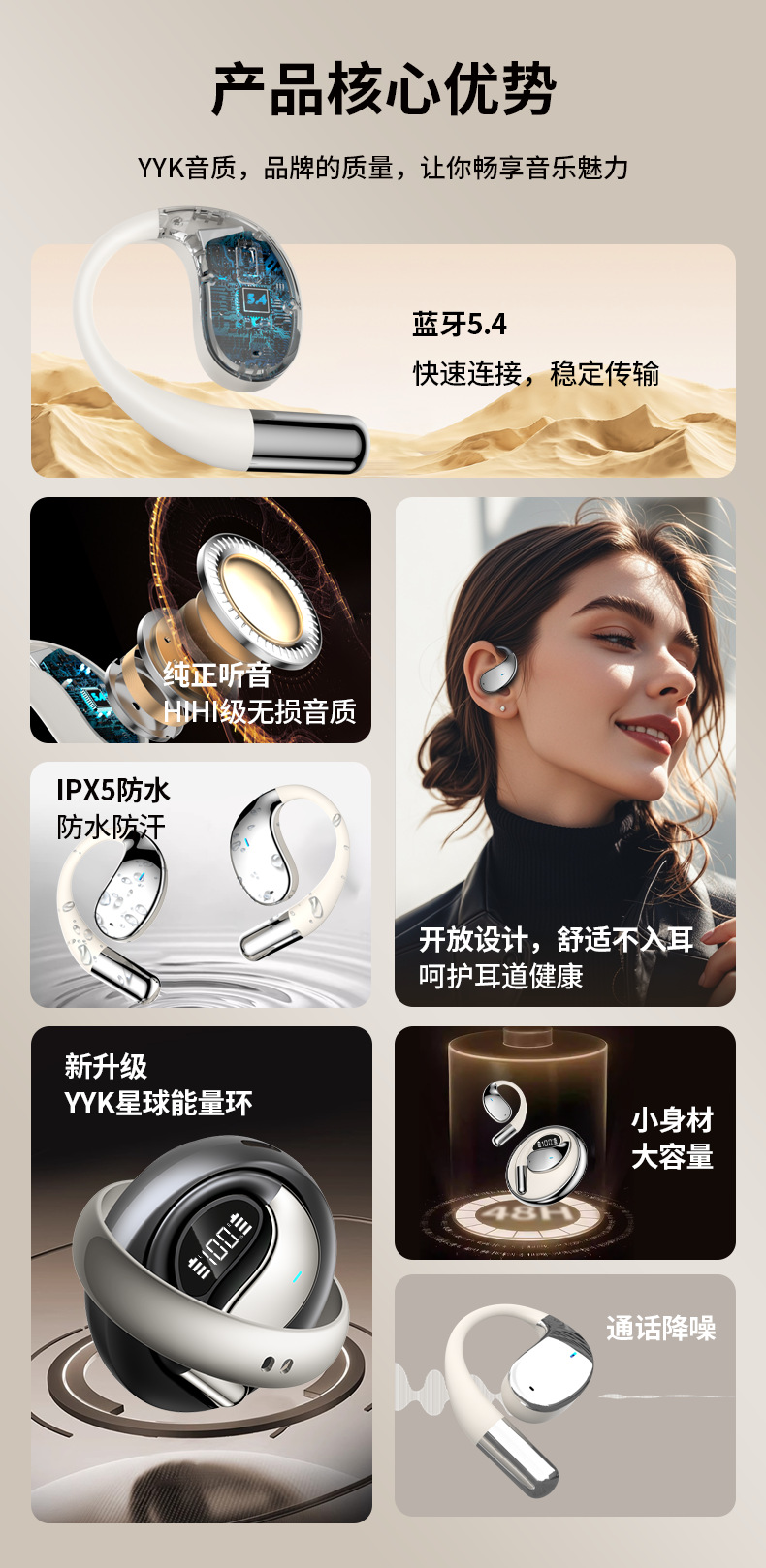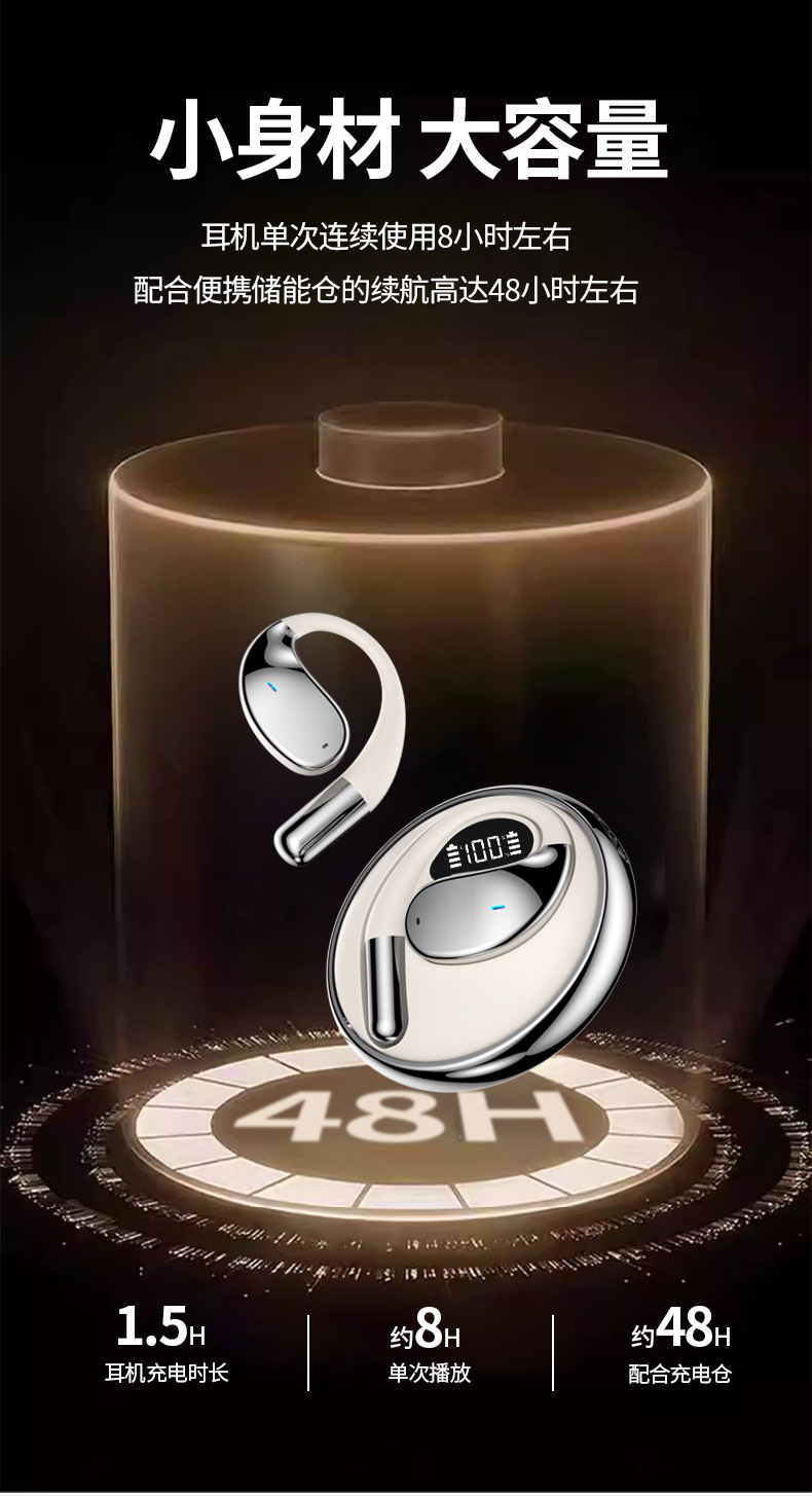 국경을 넘어 인기 있는 스마트 귀걸이형 블루투스 이어폰, 골전도 소음 감소 무선 이어폰, 전자 디지털 스테레오 음질