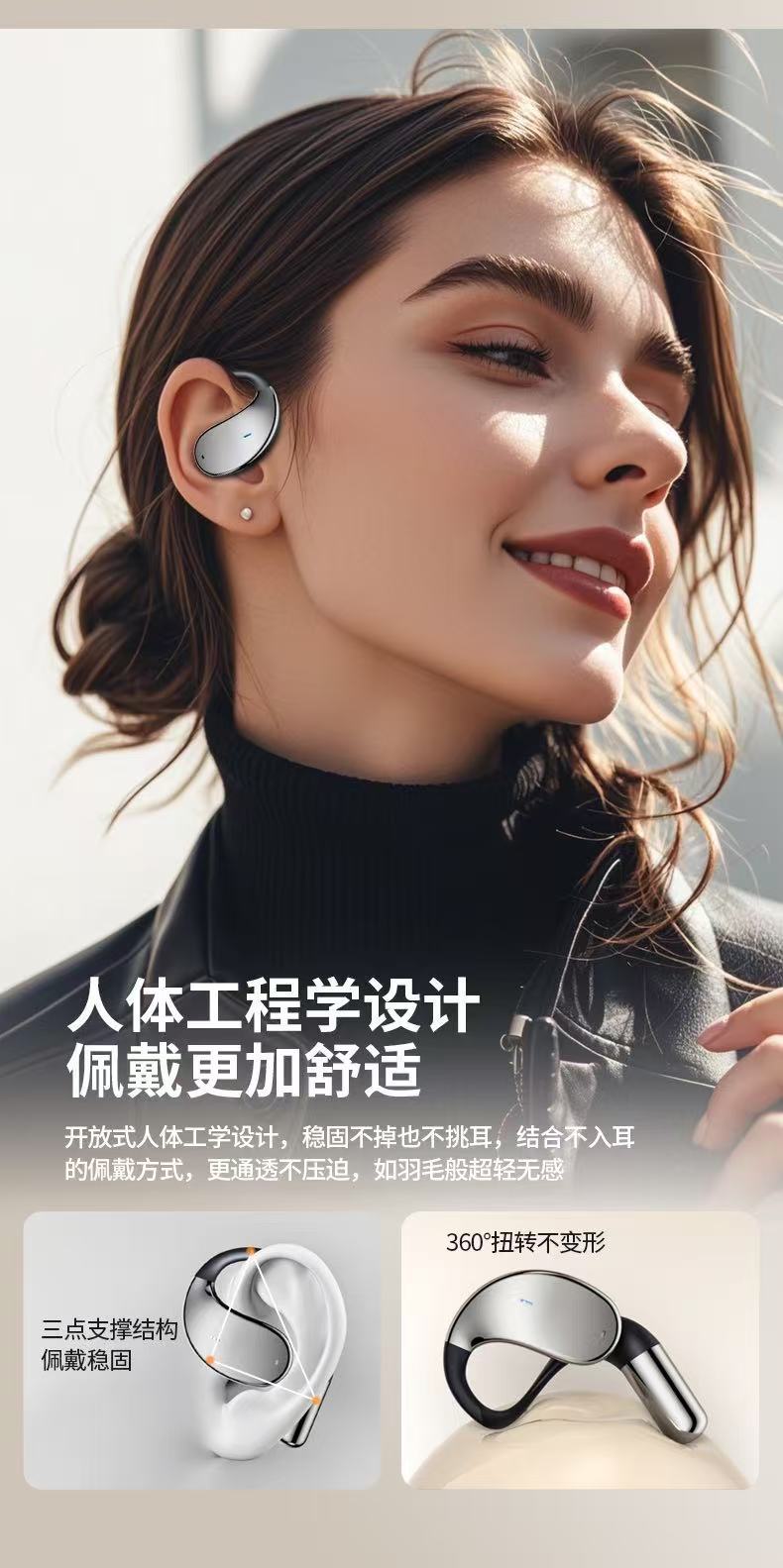 국경을 넘어 인기 있는 스마트 귀걸이형 블루투스 이어폰, 골전도 소음 감소 무선 이어폰, 전자 디지털 스테레오 음질스토어 가기