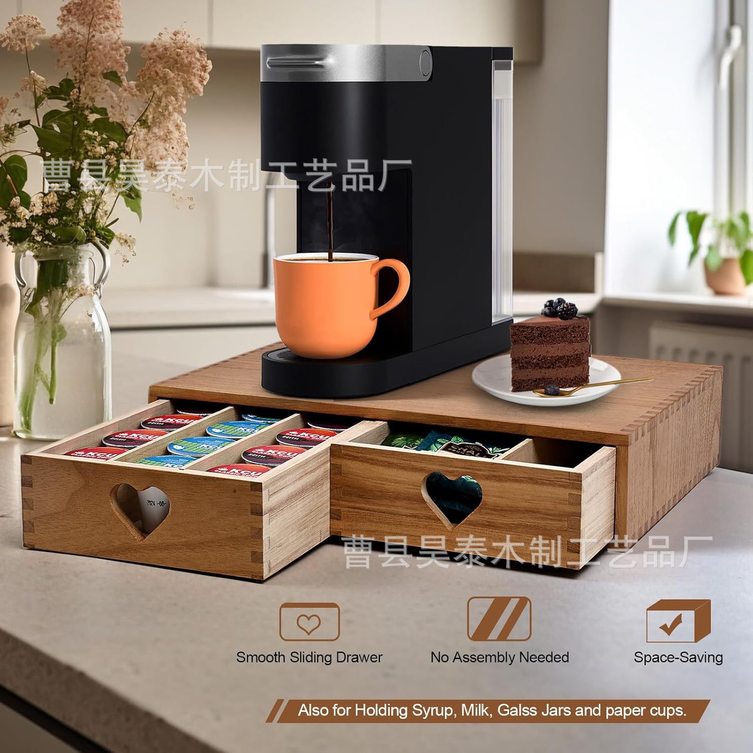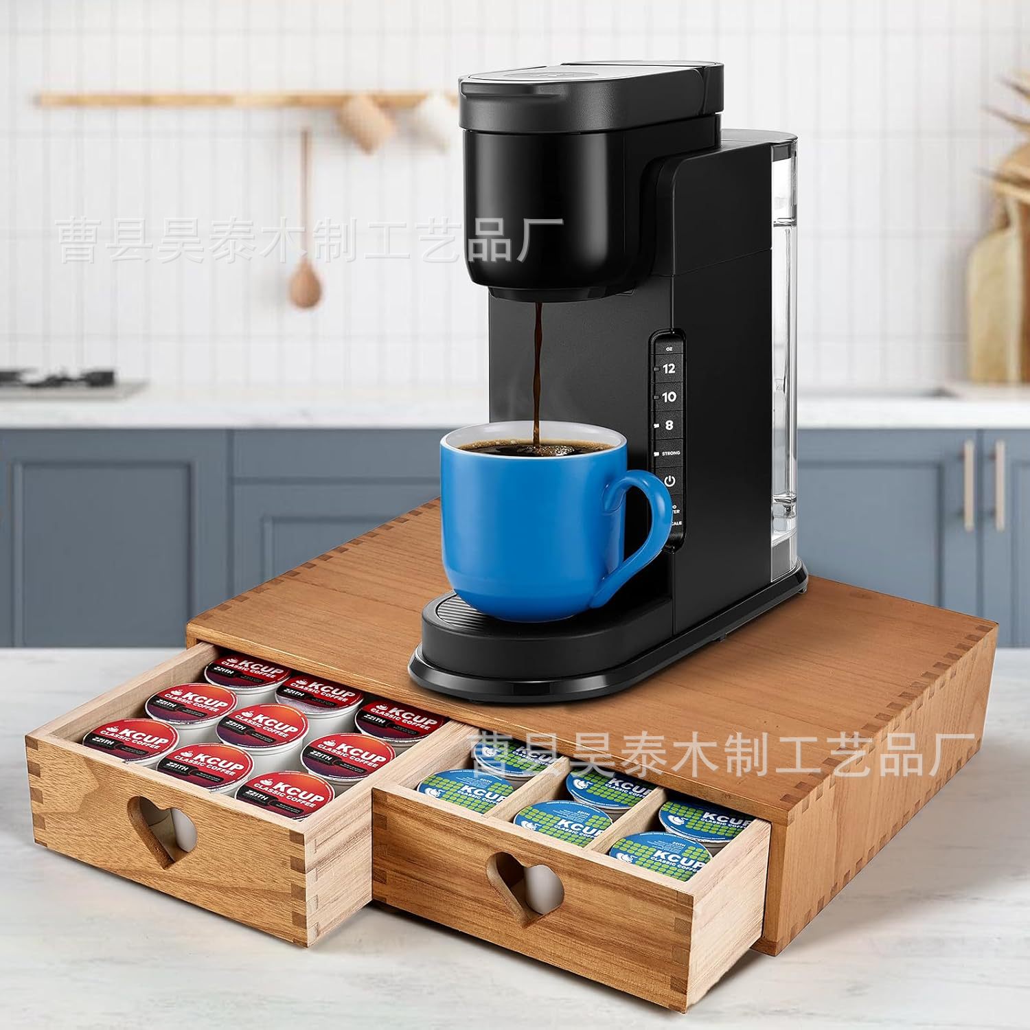 국경 간 나무 커피 캡슐 서랍 저장 랙 가정용 차 세트 저장 상자 디스플레이 랙 커피베이스 브래킷
