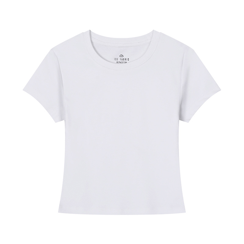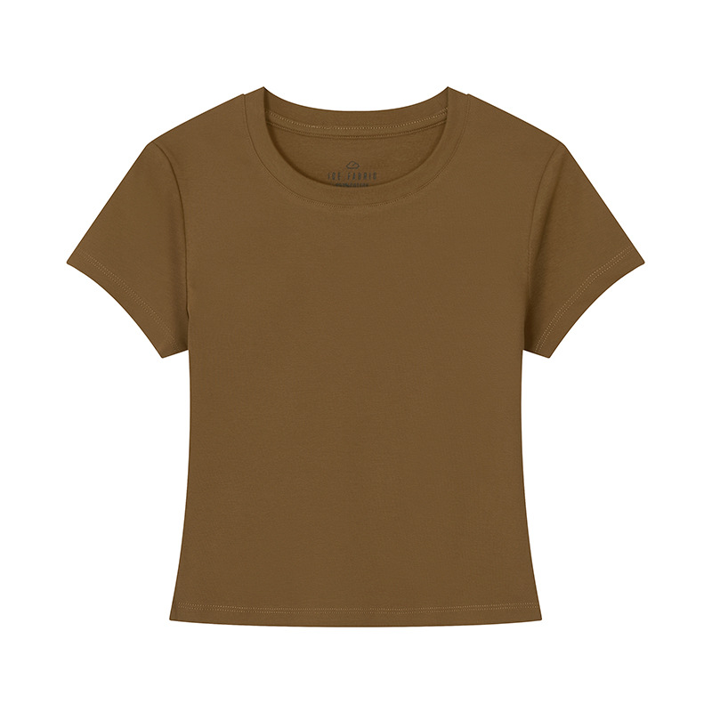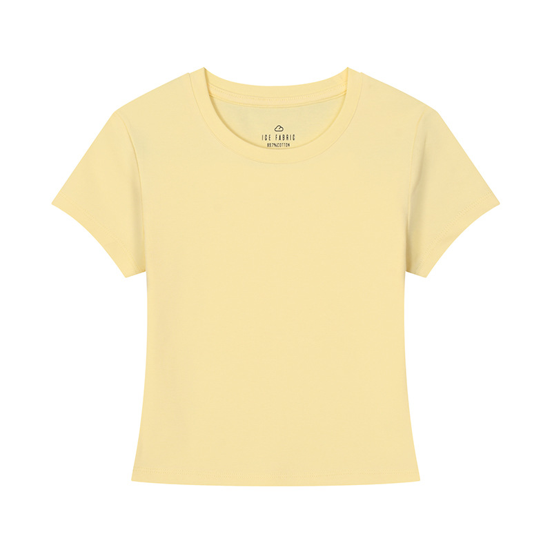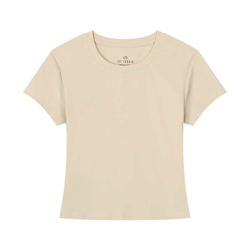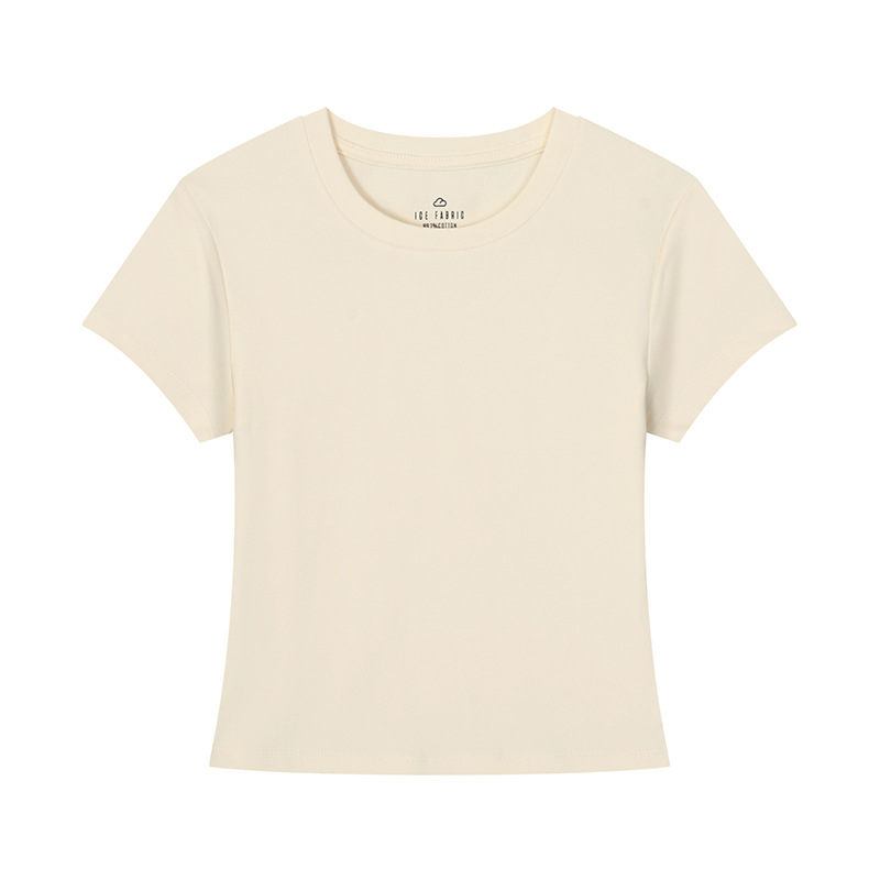 [슬림 T 짧은 스타일] 13 색 슬리밍 핫 걸 솔리드 컬러 반팔 티셔츠 여성용 라운드 넥 바닥 셔츠 다목적