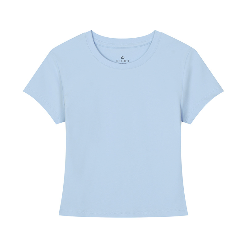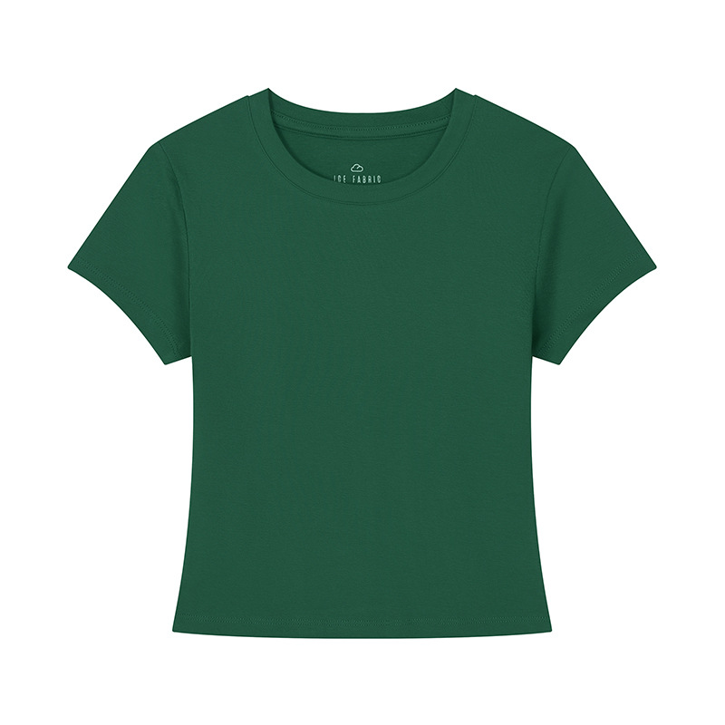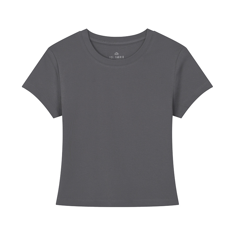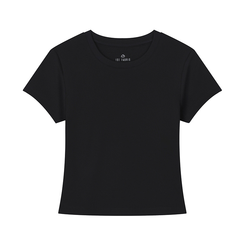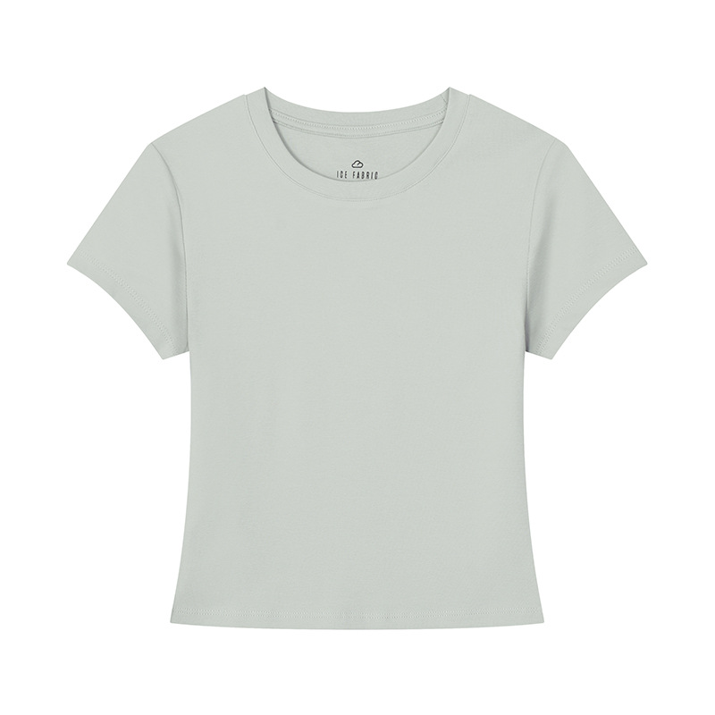 [슬림 T 짧은 스타일] 13 색 슬리밍 핫 걸 솔리드 컬러 반팔 티셔츠 여성용 라운드 넥 바닥 셔츠 다목적