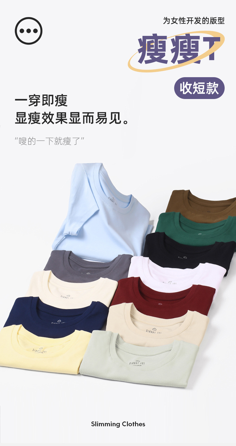 [슬림 T 짧은 스타일] 13 색 슬리밍 핫 걸 솔리드 컬러 반팔 티셔츠 여성용 라운드 넥 바닥 셔츠 다목적스토어 가기