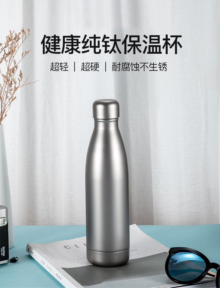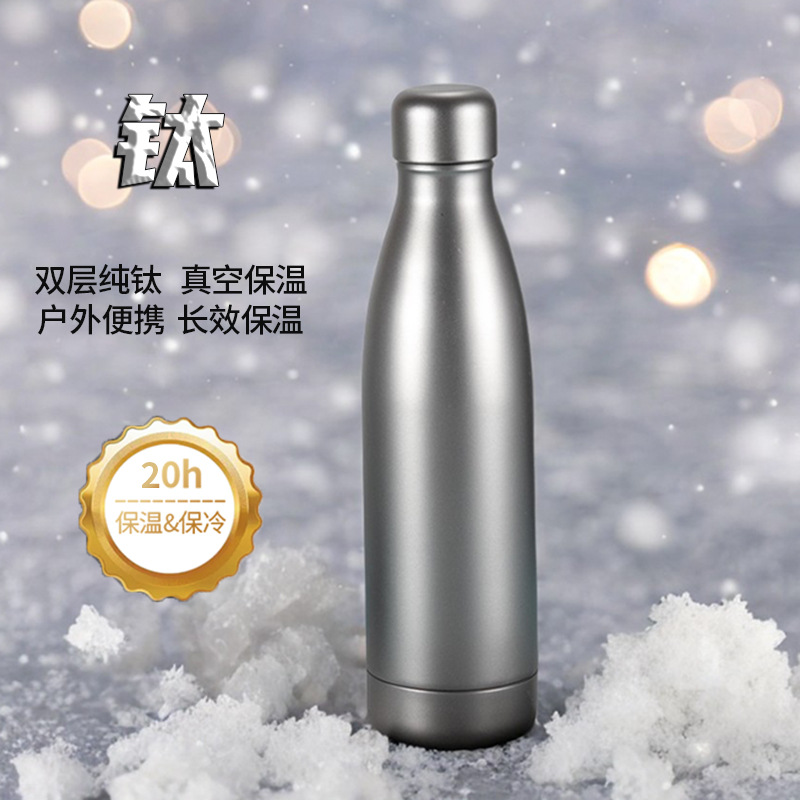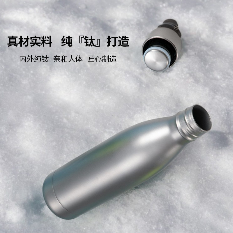 국경 이중 층 순수 티타늄 스포츠 주전자 야외 등산 물병 캠핑 티타늄 합금 코크스 병 진공 단열재
