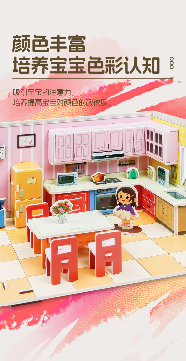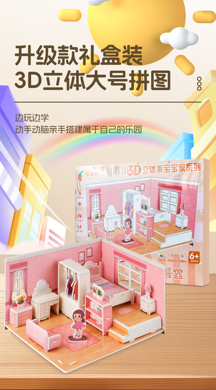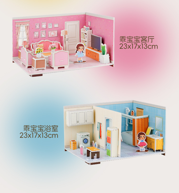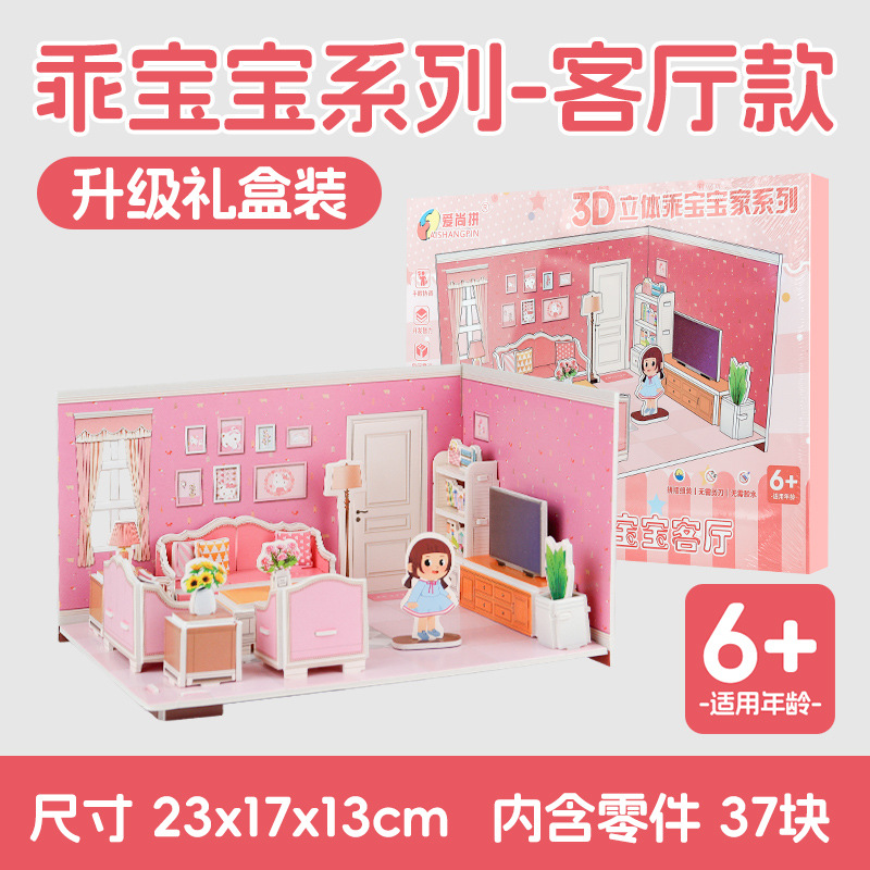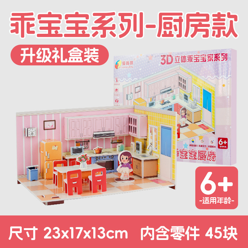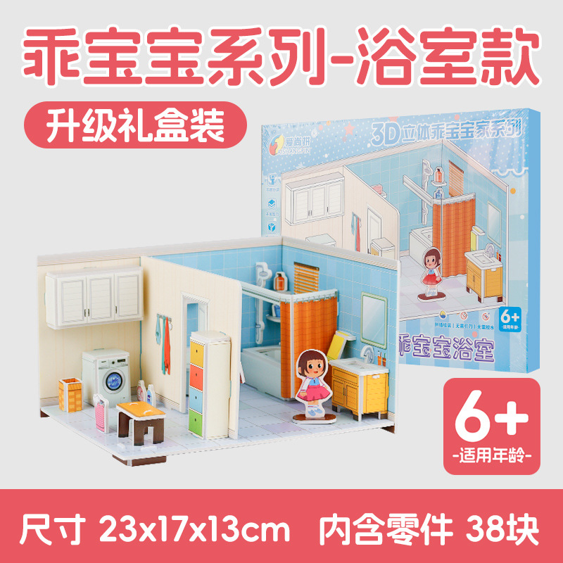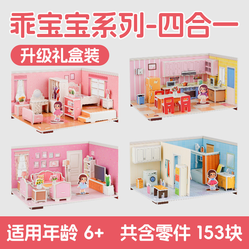 어린이 퍼즐 3 차원 퍼즐 수제 DIY 종이 3D 모델 소녀 공주 시리즈 유치원 조립 장난감스토어 가기