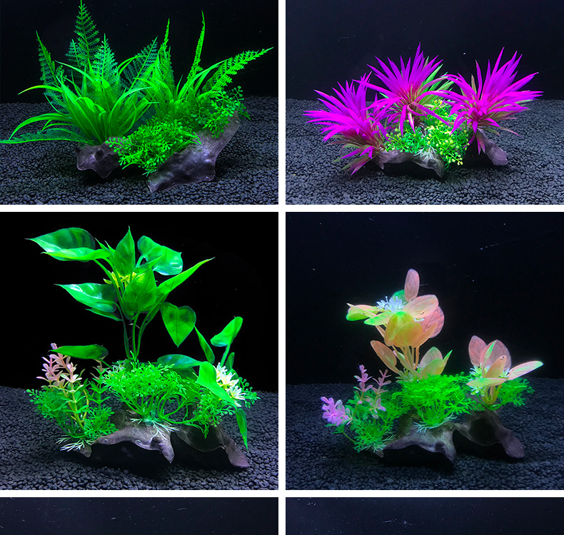 새로운 물고기 탱크 시뮬레이션 물 잔디 장식 플라스틱 물 잔디 암석베이스 시뮬레이션 죽은 나무 소스 공장 직접 판매스토어 가기
