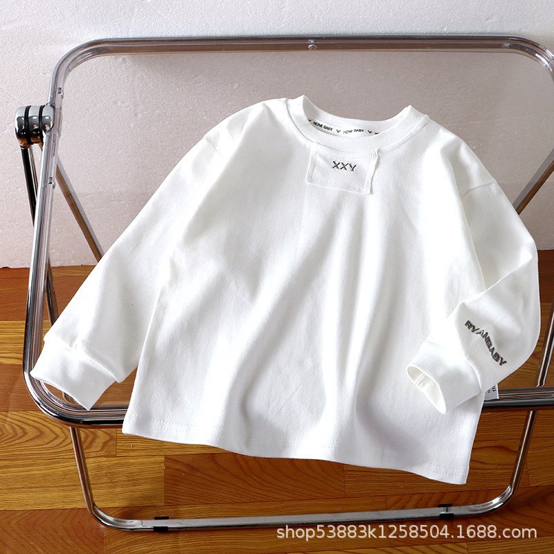 봄과 가을 유행 면 긴 소매 편지베이스 셔츠 소년과 소녀 하이 퀄리티 탑 패딩 천 자수 솔리드 컬러베이스 셔츠