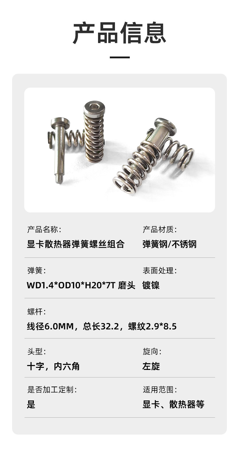 맞춤형 그래픽 카드 냉각 스테핑 스프링 조합 나사 컴퓨터 고정 백플레이트 니켈 도금 M2 고강도 스프링 나사스토어 가기