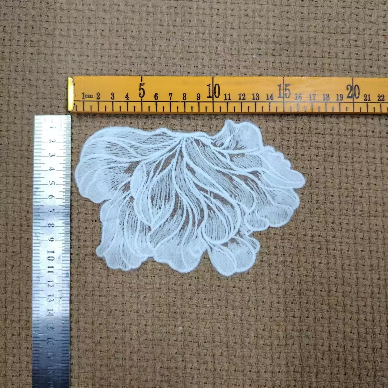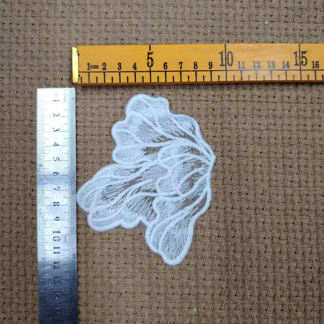 尺码备注:一码等于0.9144米,等于91.44厘米。花边上机做是一条15码,由于水溶花边水溶和染色的时候会缩水,所以一条15码的花边白色实际长度14.5码左右,黑色或者染色实际只有14码左右,货款按15码一条结算,介意的亲慎拍,谢谢!