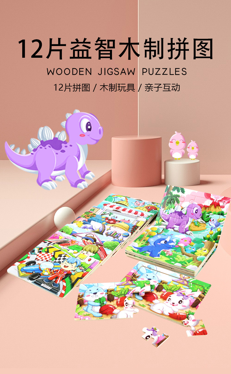 나무 12 조각 퍼즐 어린이 동물 공룡 만화 나무 비행기 퍼즐 아기 조기 교육 장난감스토어 가기