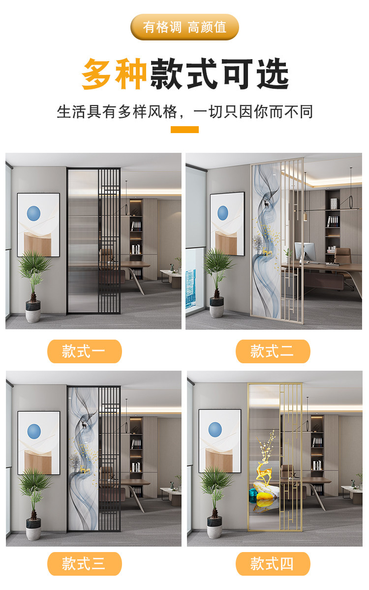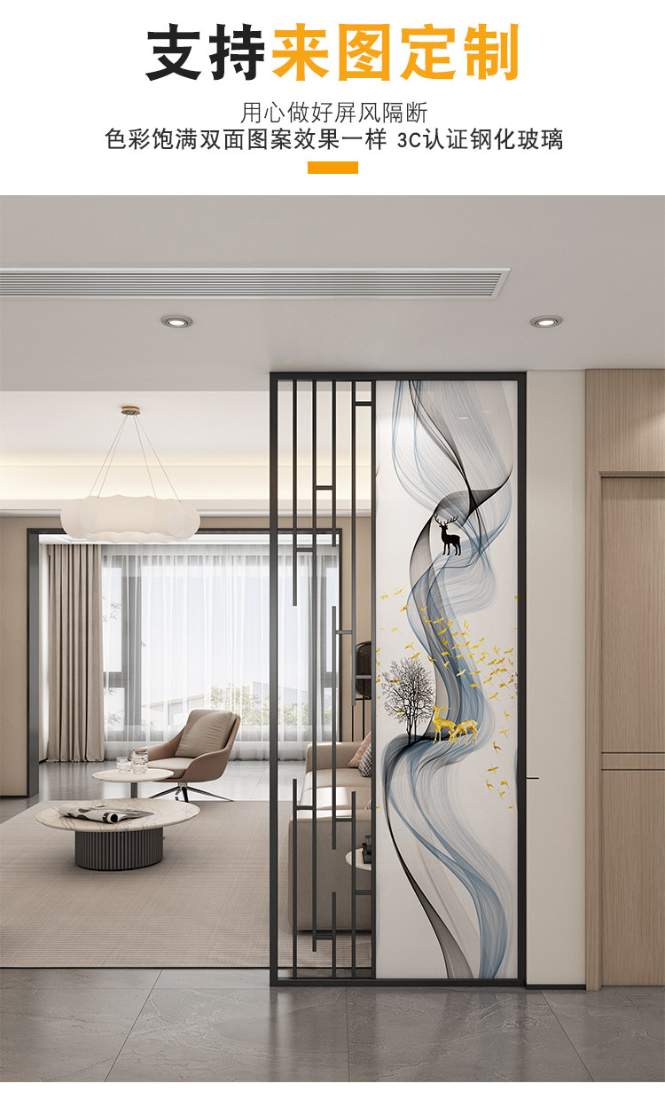 거실 예술 유리 스테인레스 스틸 스크린 현관문 Changhong 반투명 강화 유리 욕실 스테인레스 스틸 칸막이스토어 가기