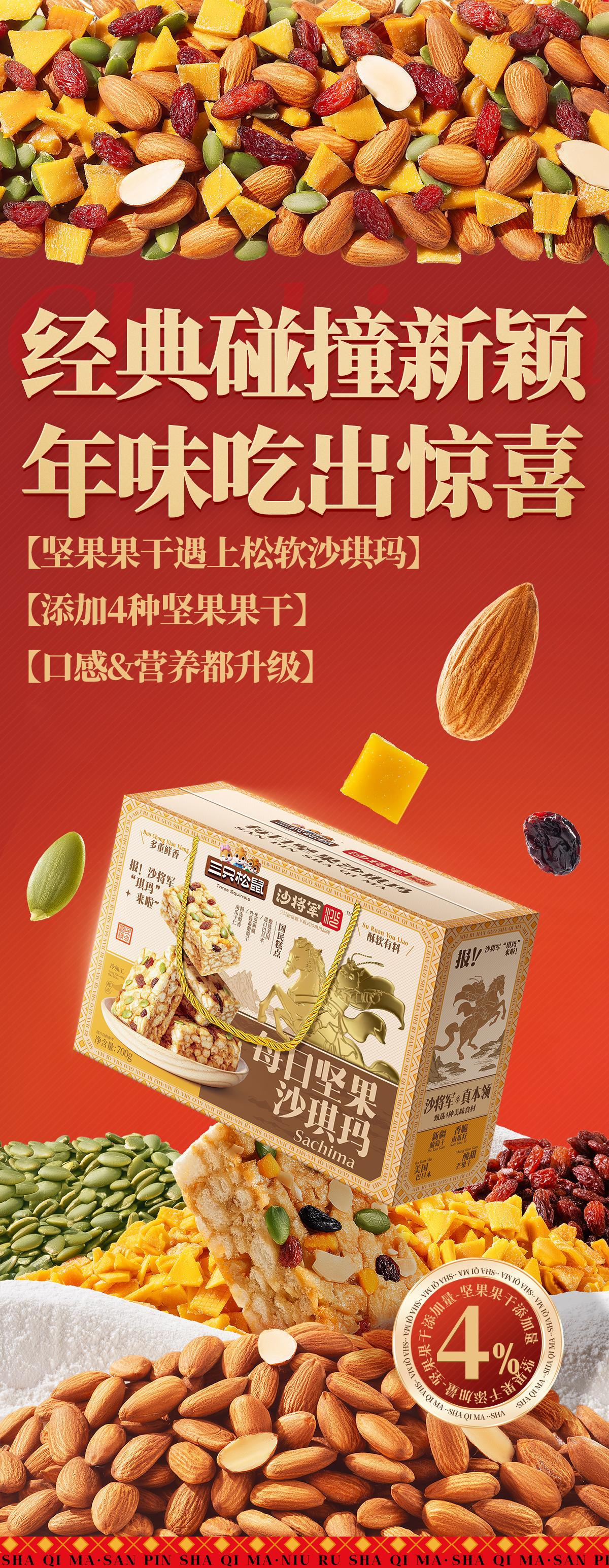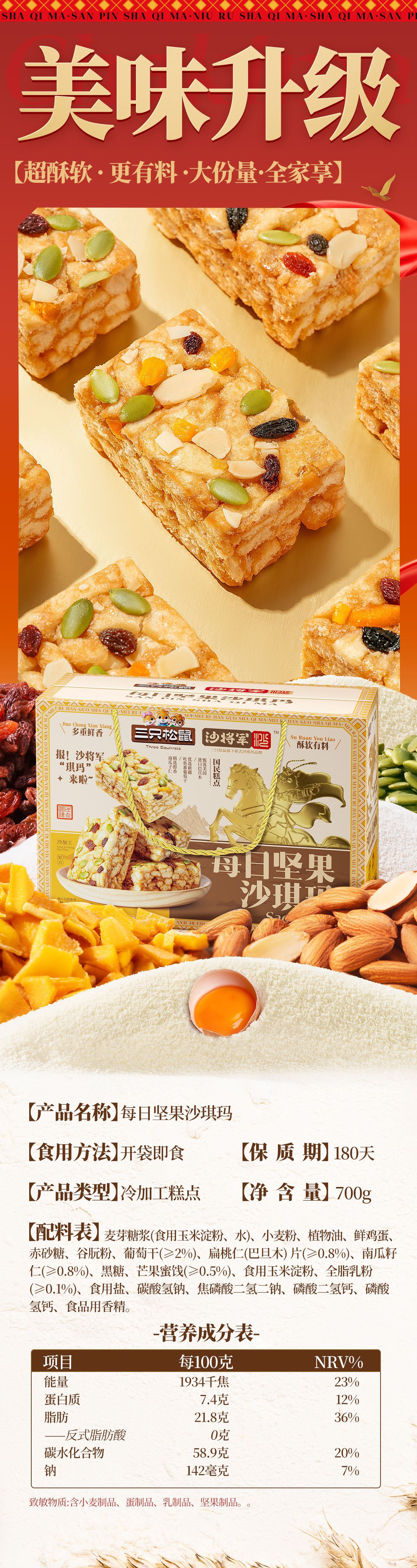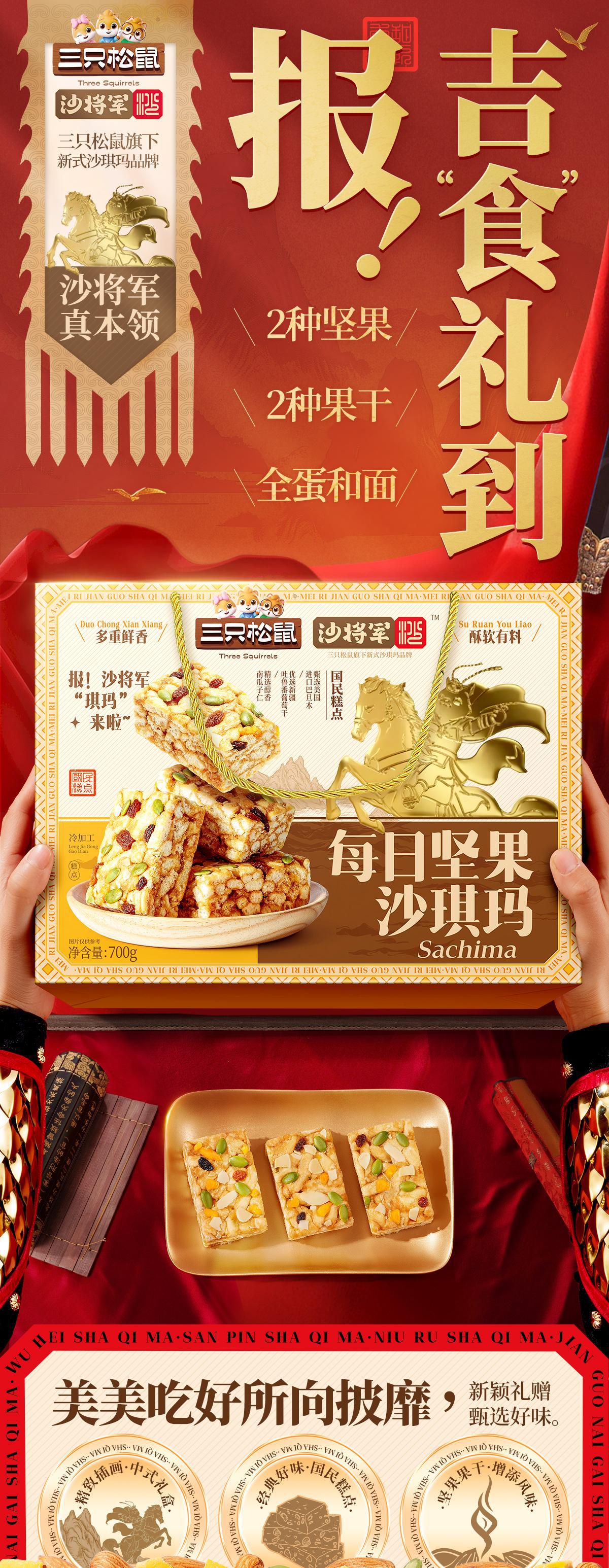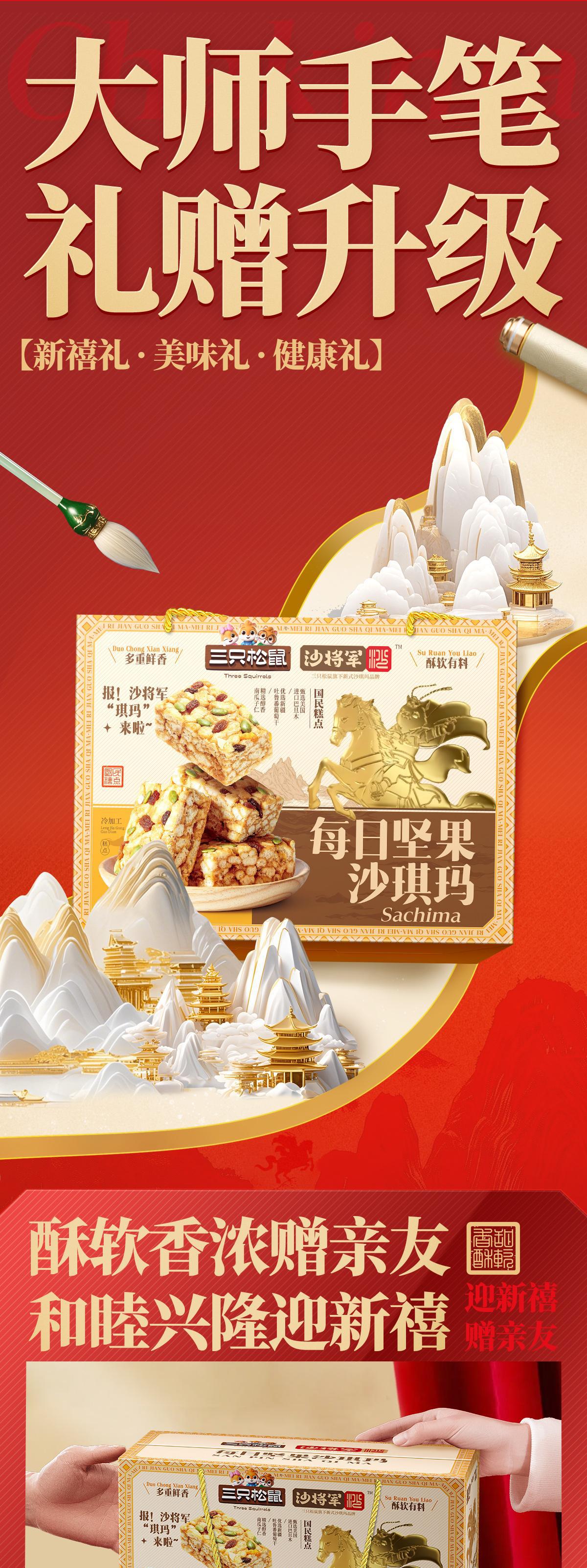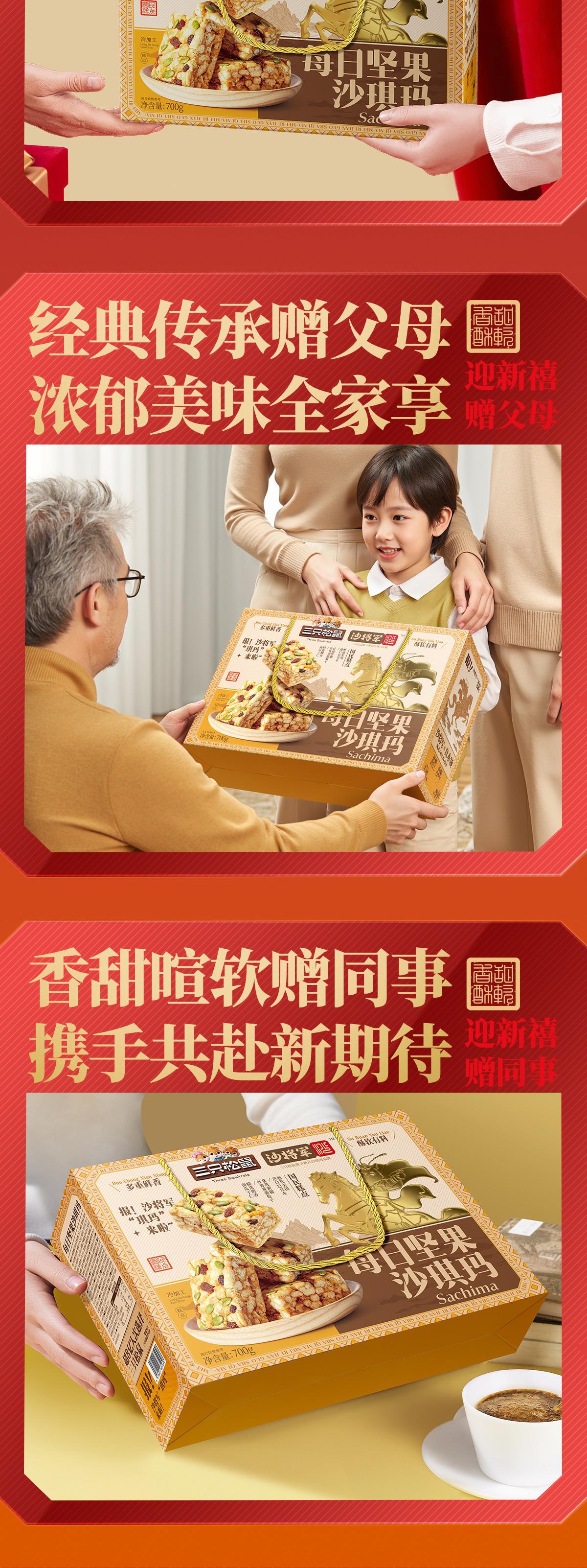 [다람쥐 세 마리 데일리 견과류 샤키마 선물세트 700g] 특산 과자 아침 간식