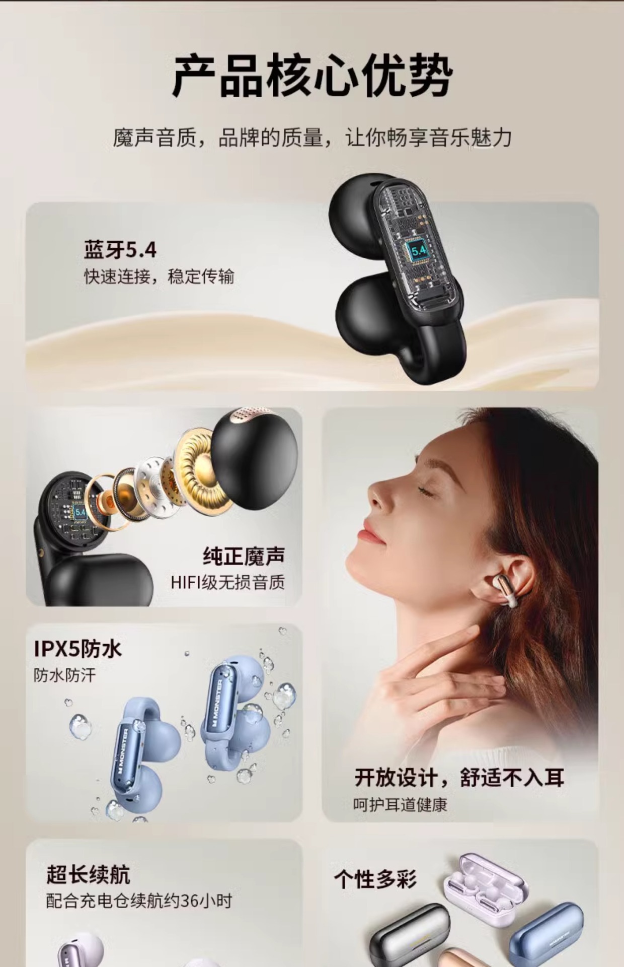 Monster AC601 Bluetooth 헤드셋 이어 클립 유형 초장기 배터리 수명 낮은 대기 시간 e-스포츠 게임용 헤드셋 적합