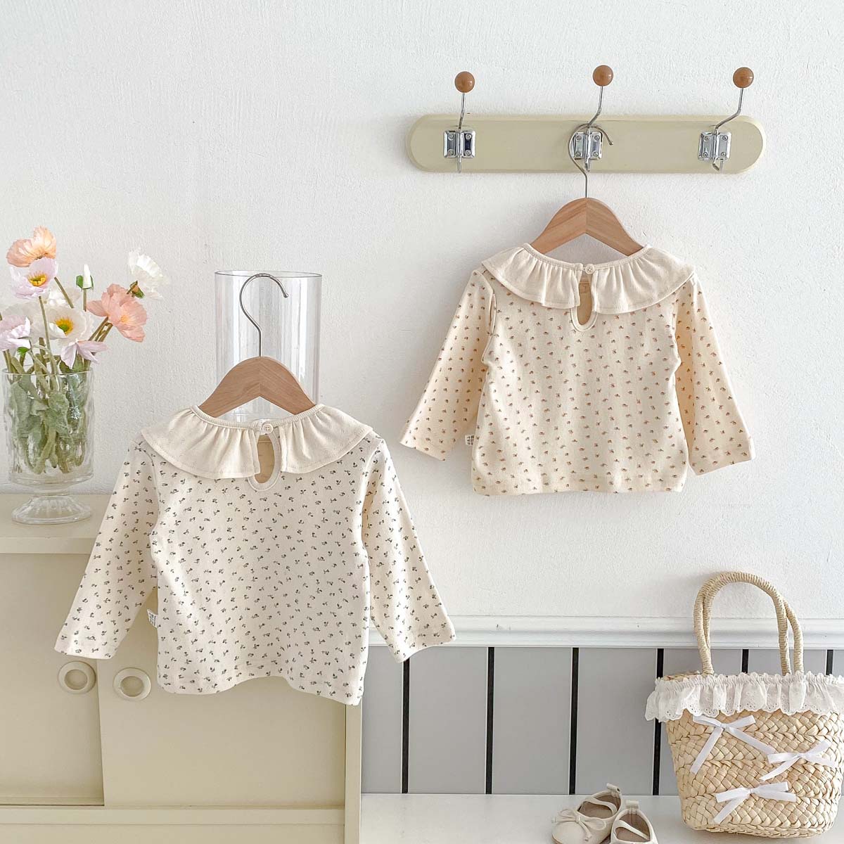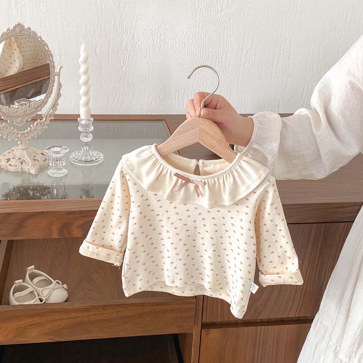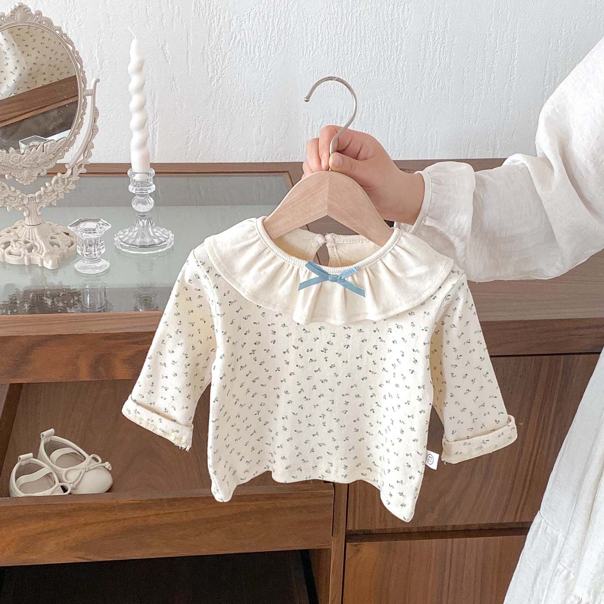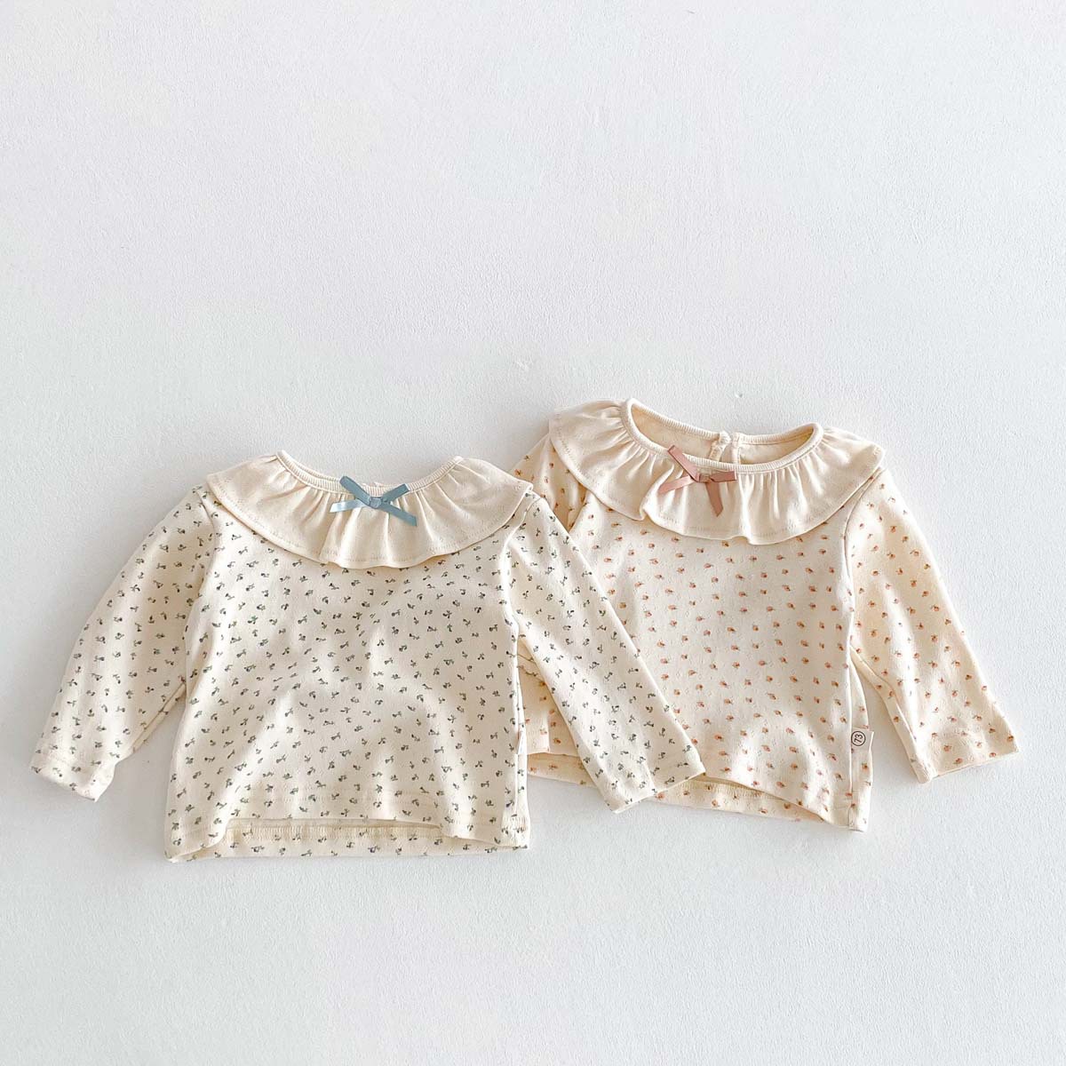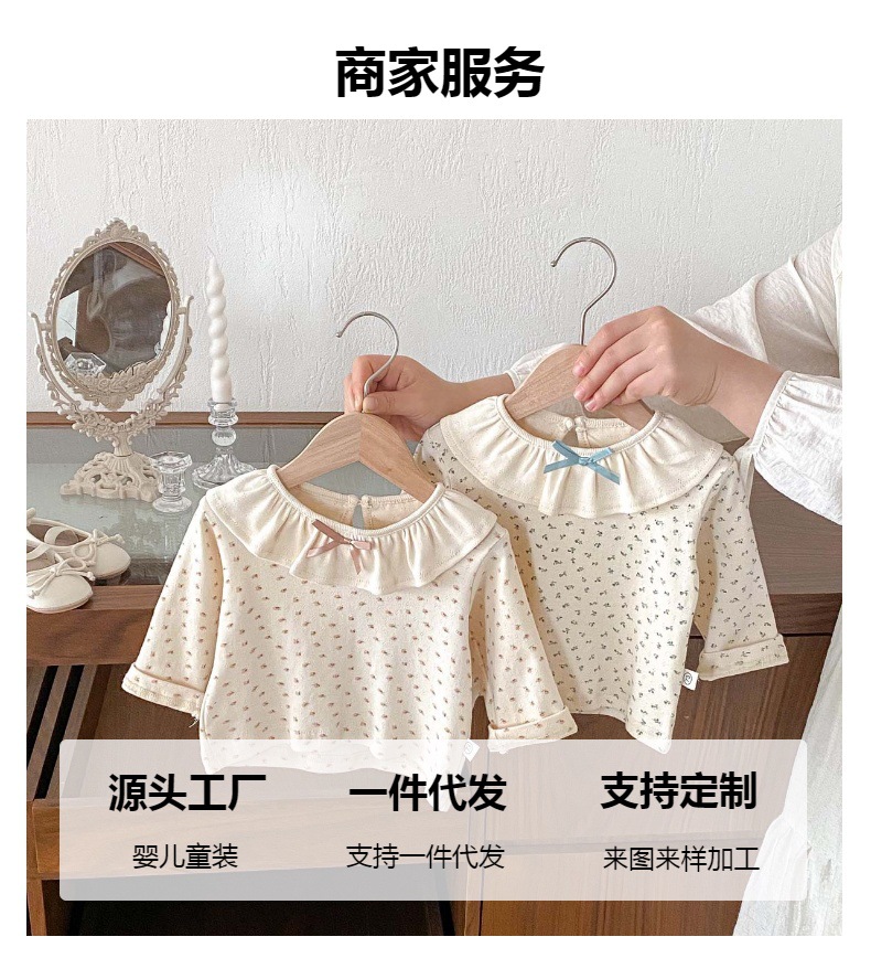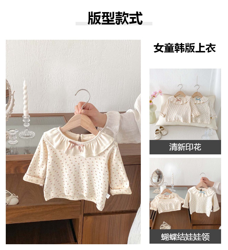 소녀의 봄과 가을 새로운 긴팔 인쇄 탑 아기 인형 칼라 올매치 베이스 셔츠 달콤한 활 티셔츠스토어 가기
