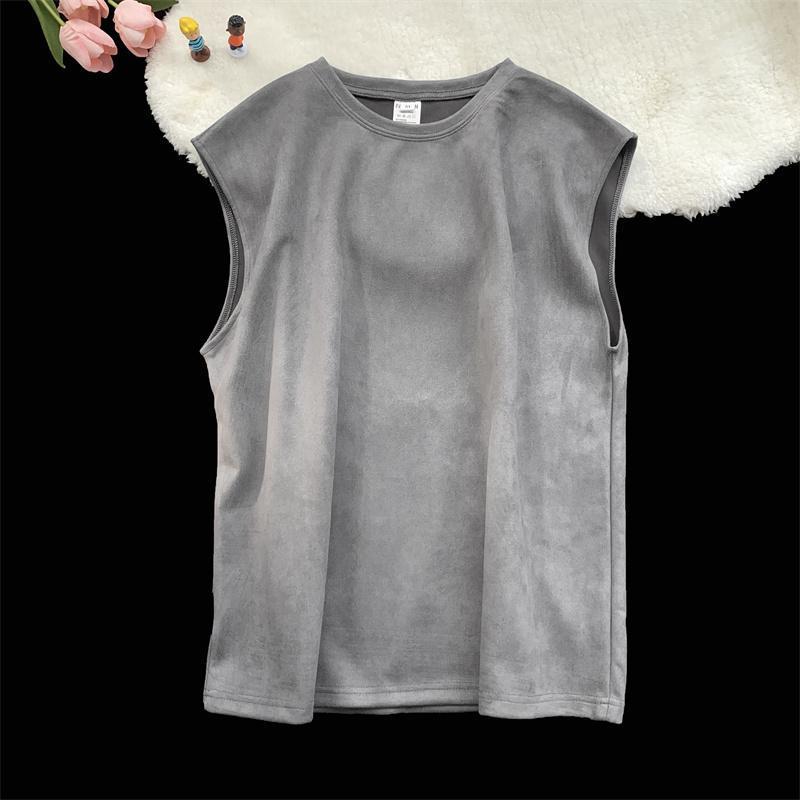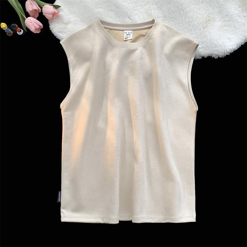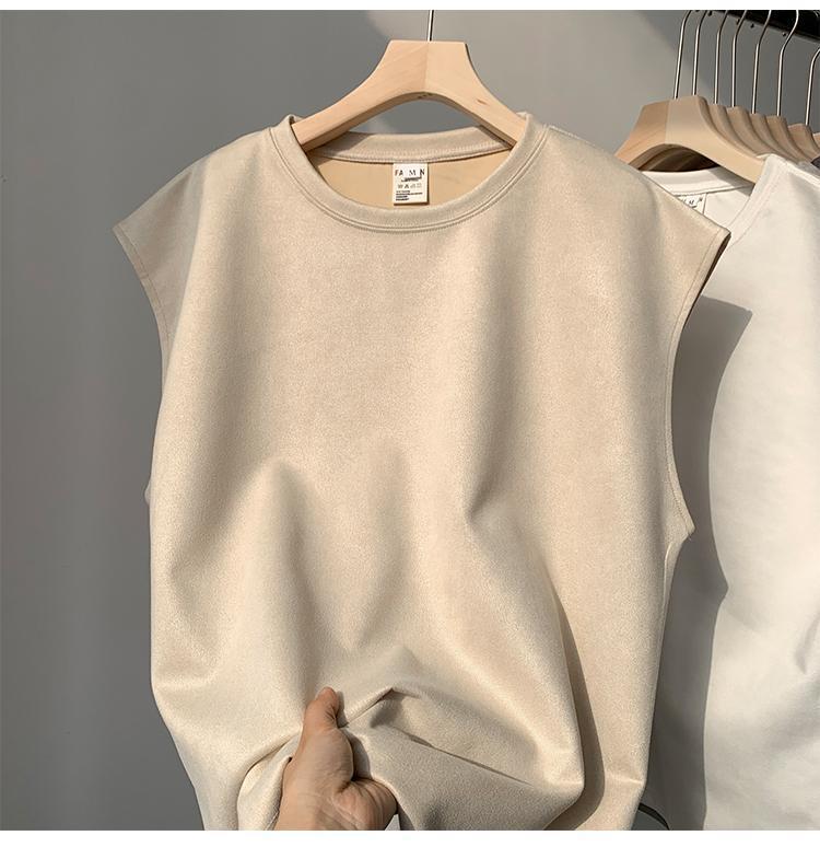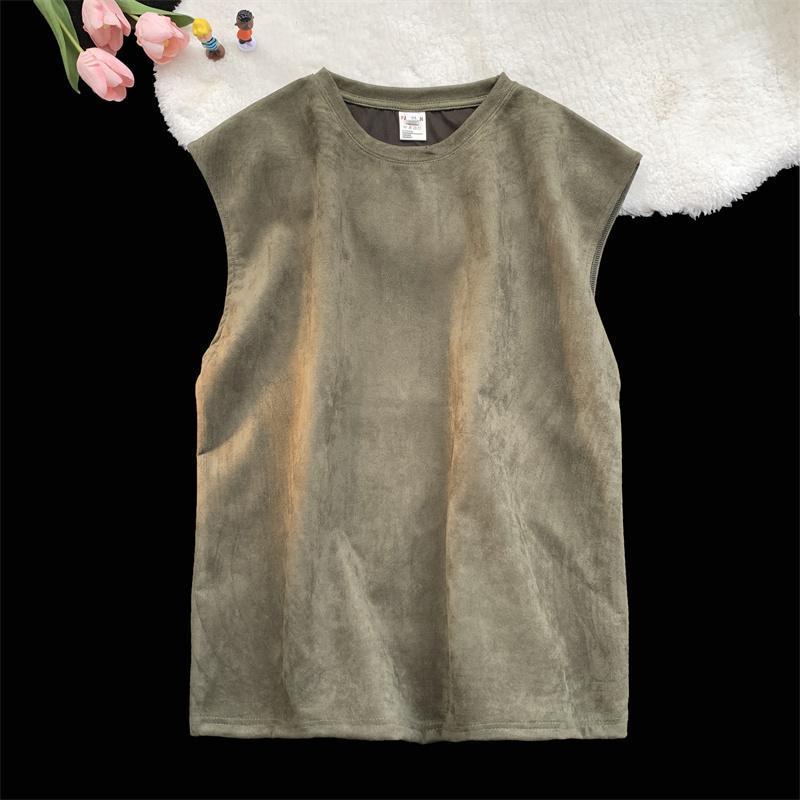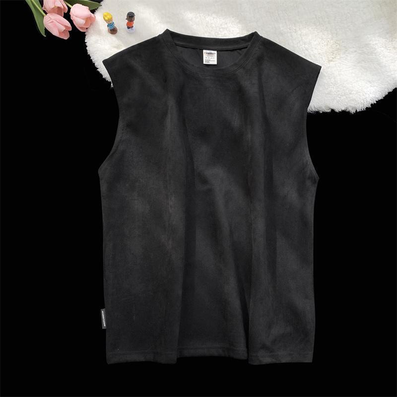 솔리드 컬러 민소매 티셔츠 남성용 여름 패션 브랜드 스웨이드 무거운 웨이스트 코트 조끼 미국 빈티지 스포츠 캐주얼 스웨트 셔츠