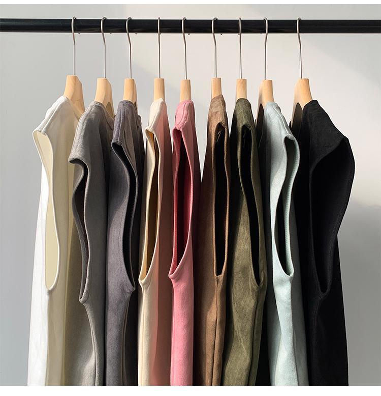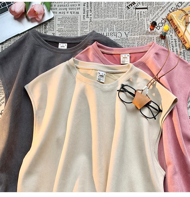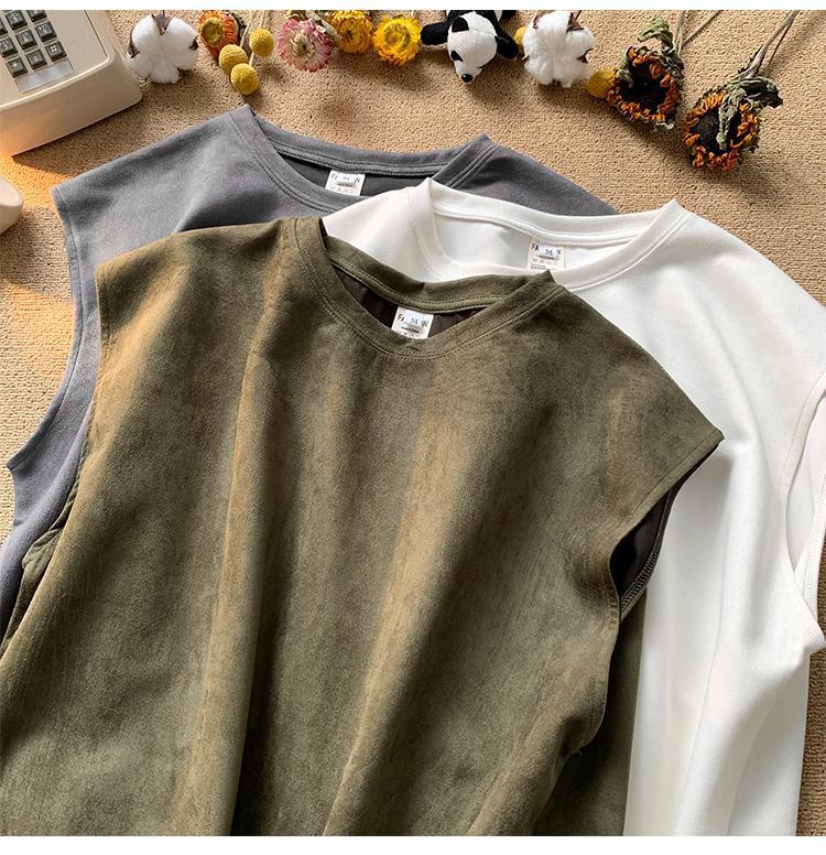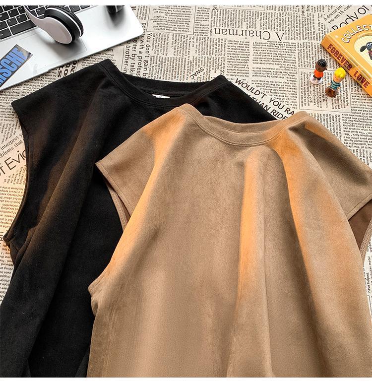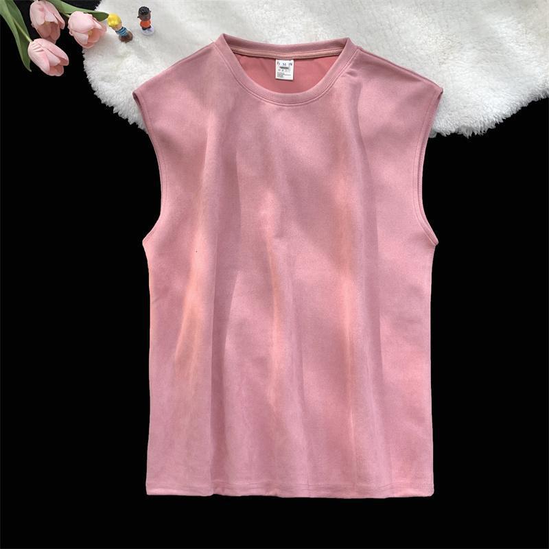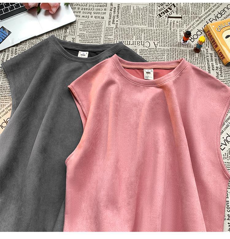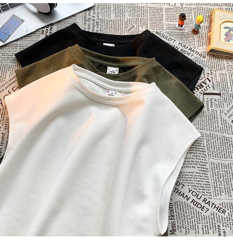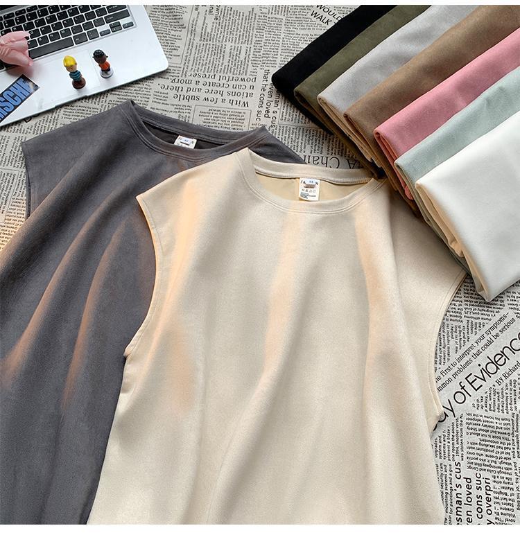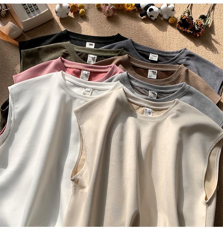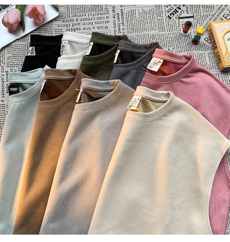솔리드 컬러 민소매 티셔츠 남성용 여름 패션 브랜드 스웨이드 무거운 웨이스트 코트 조끼 미국 빈티지 스포츠 캐주얼 스웨트 셔츠스토어 가기