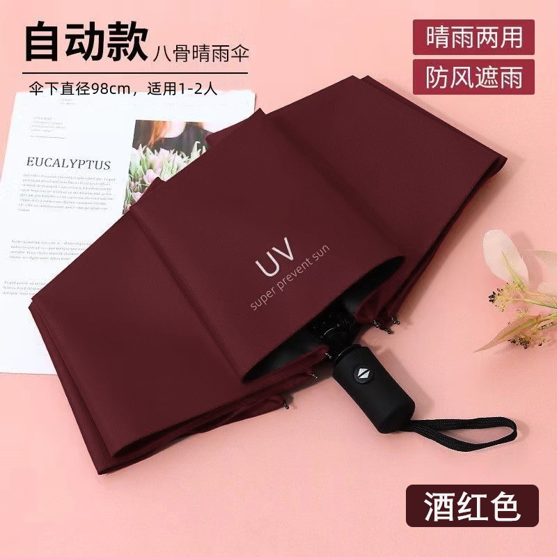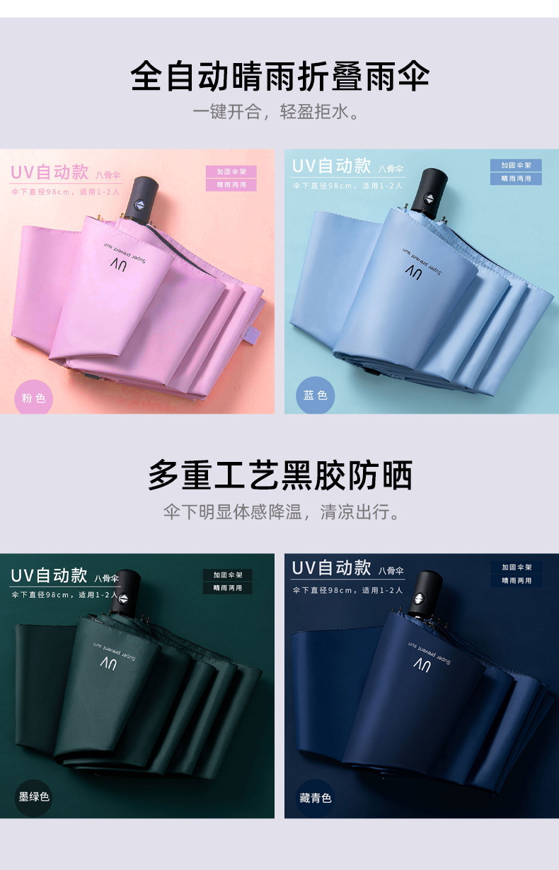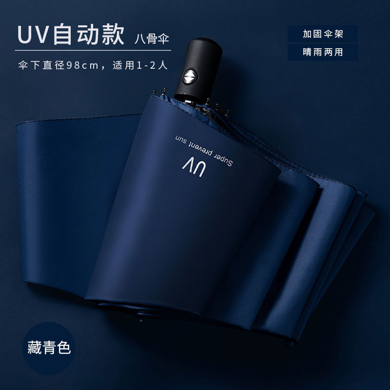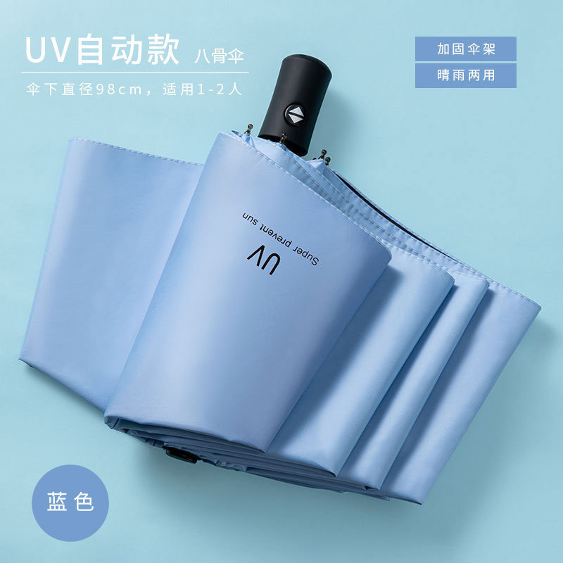 3 배 8 뼈 UV 태양 우산 우산 전체 자동 이중 목적 검은 플라스틱 접이식 우산 비즈니스 광고 우산 로고스토어 가기