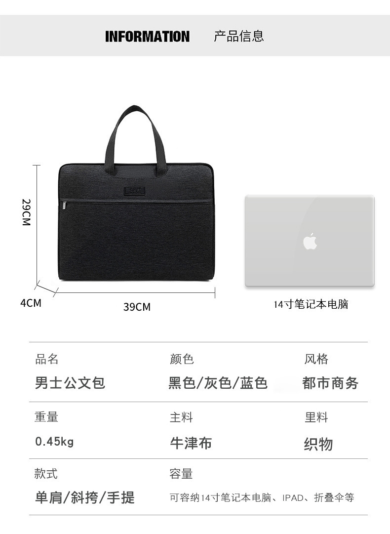 자유신 비즈니스 서류가방 남성용 서류가방 맞춤형 로고 옥스포드 천 수납가방 A4 파일가방 서류가방