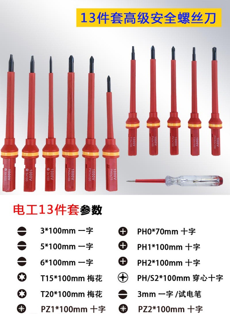 1000V 고전압 절연 하드 크롬 바나듐 강철 강한 자기 6136 세트 다기능 전기 스크루 드라이버의 13 피스 세트스토어 가기