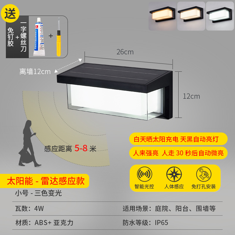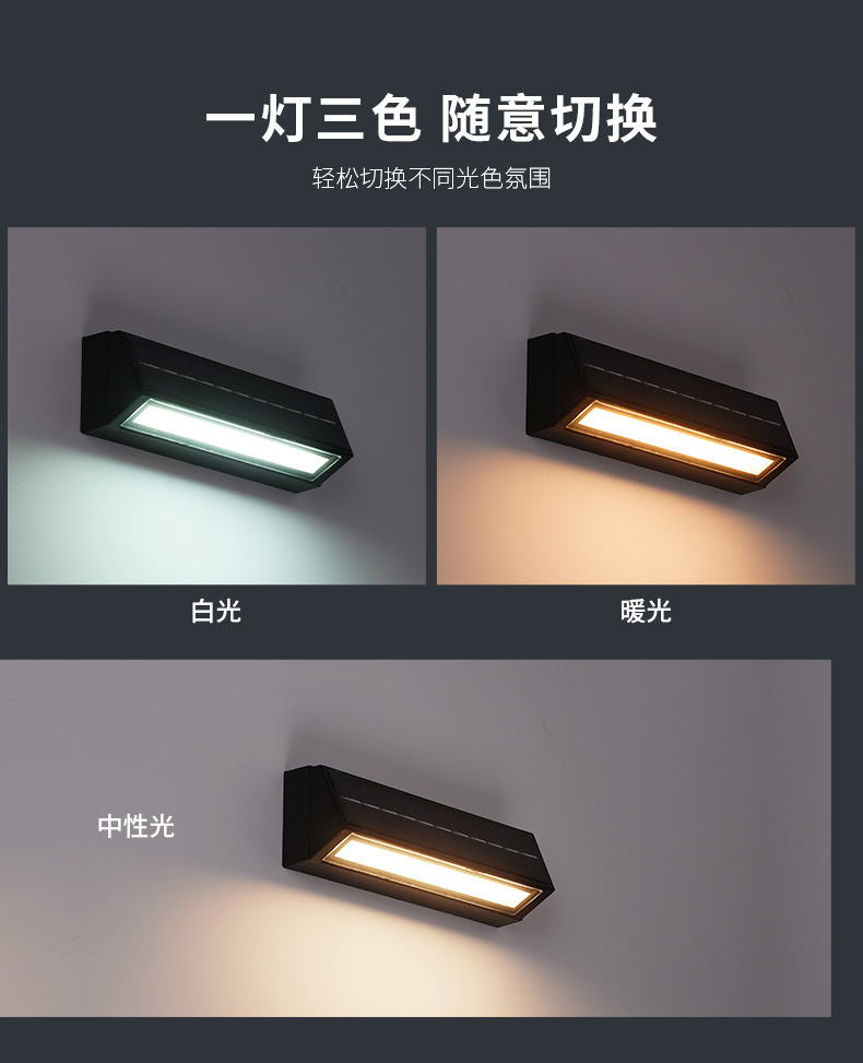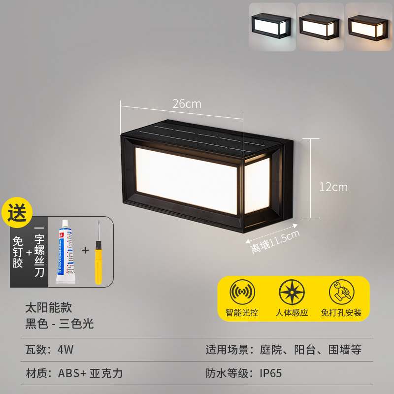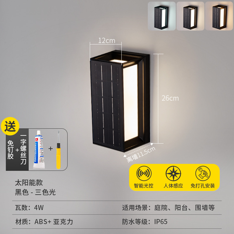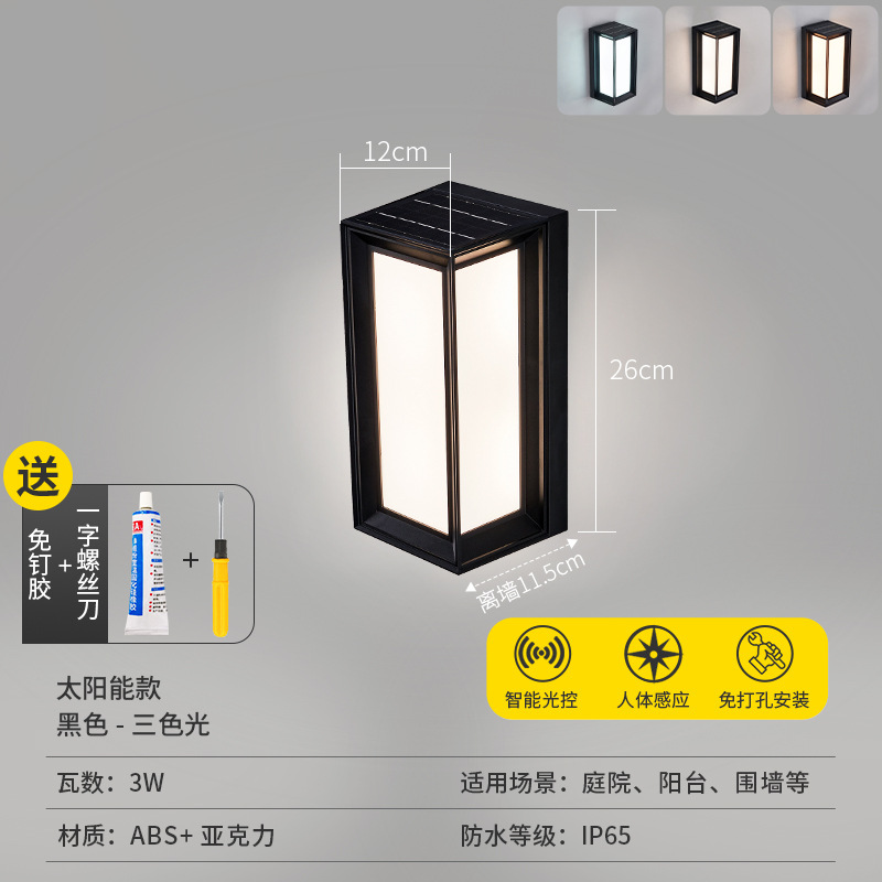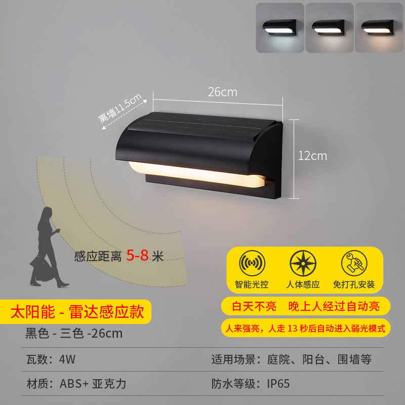 • [가정형 태양광 벽램프 ABS] 태양광-블랙-26cm-3색조명-4W