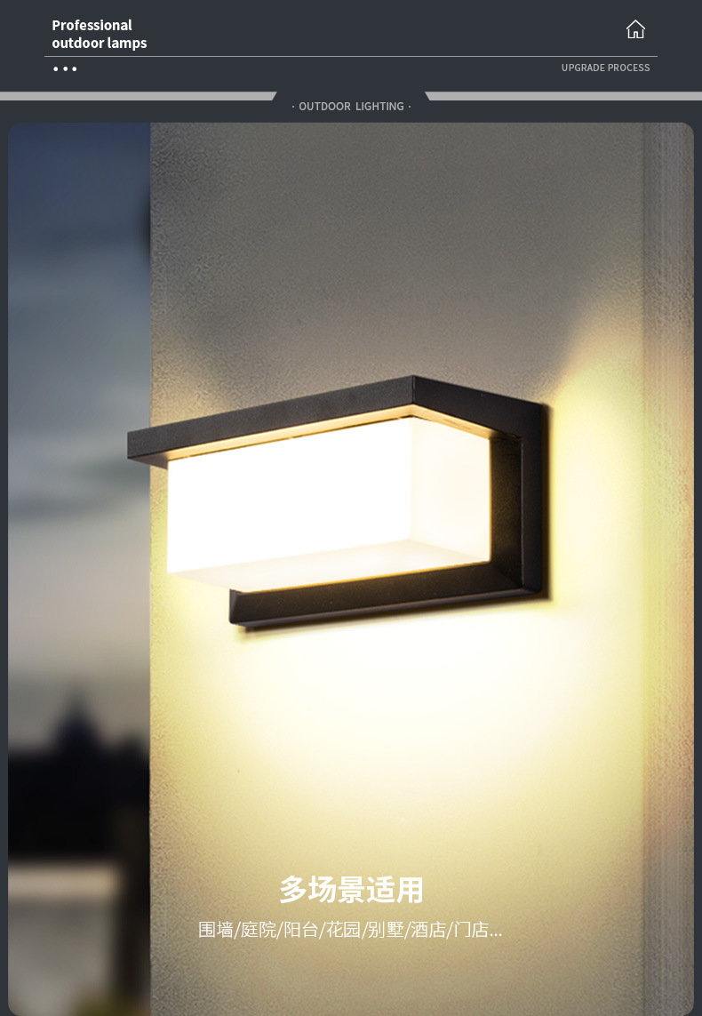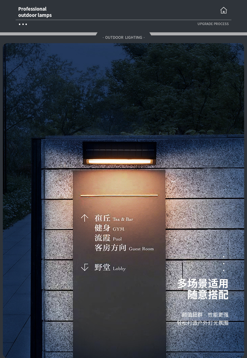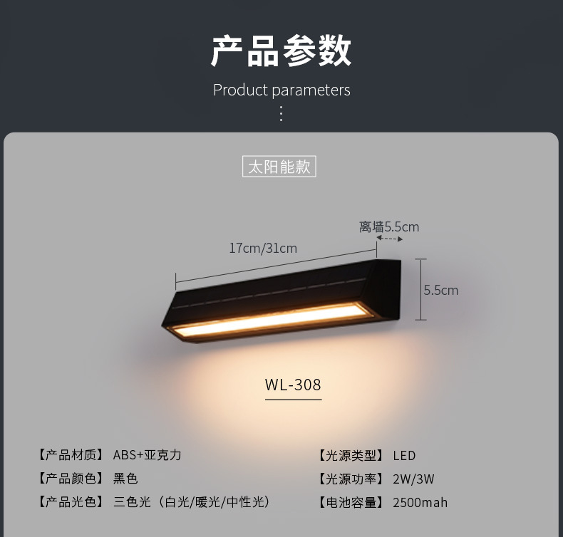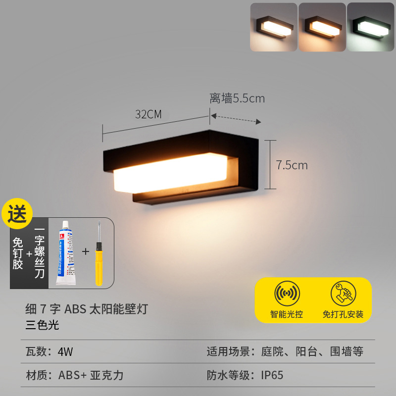 • [얇은 7자리 ABS 태양광 벽등] 솔라-블랙-32cm-4W