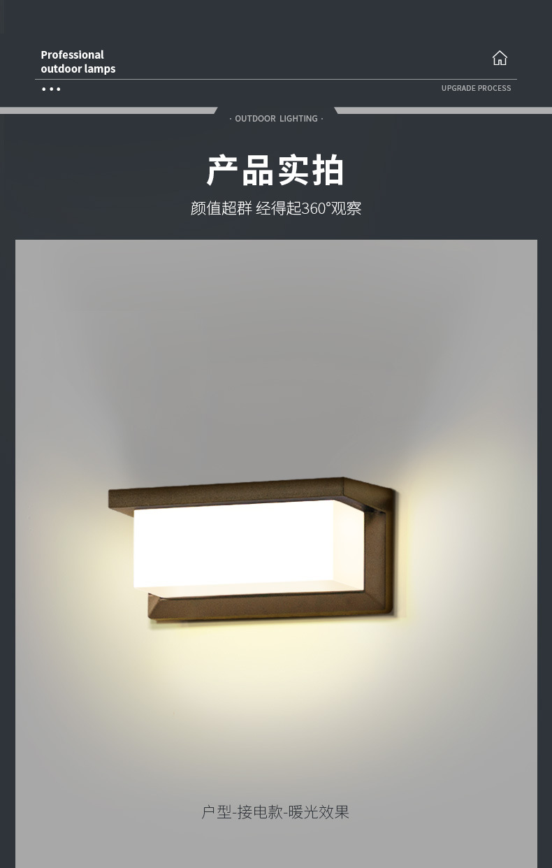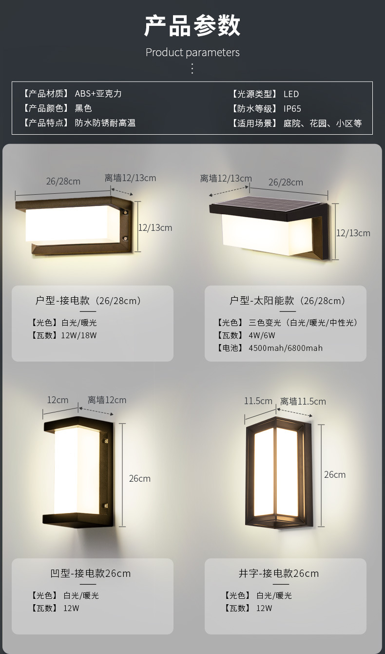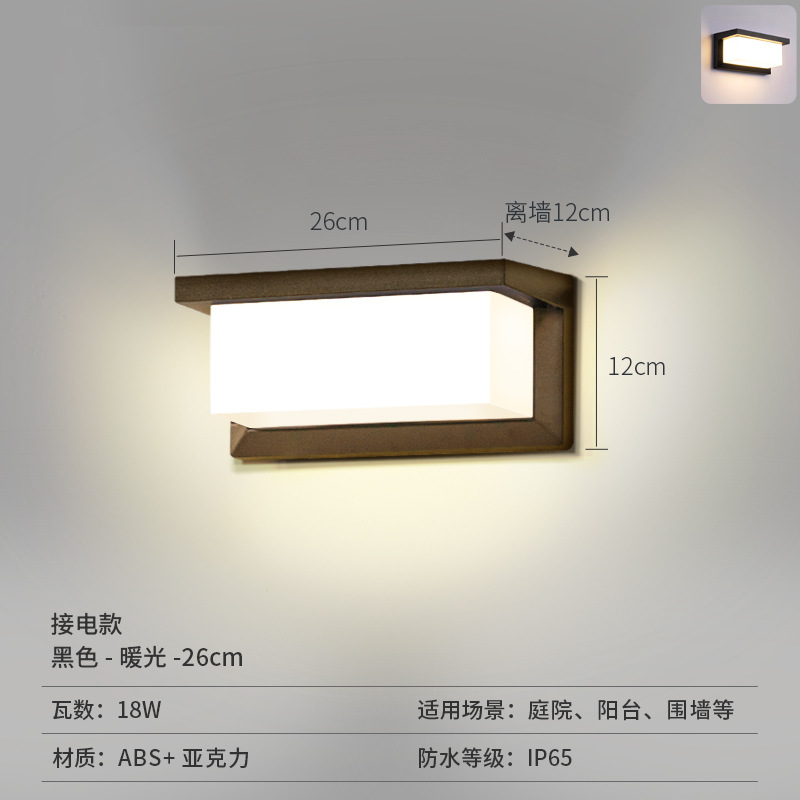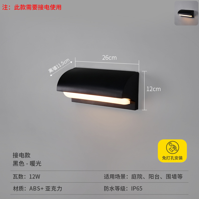 • [집형 전기벽등 ABS] 블랙-전기-소형 26cm-따뜻한 빛-12W