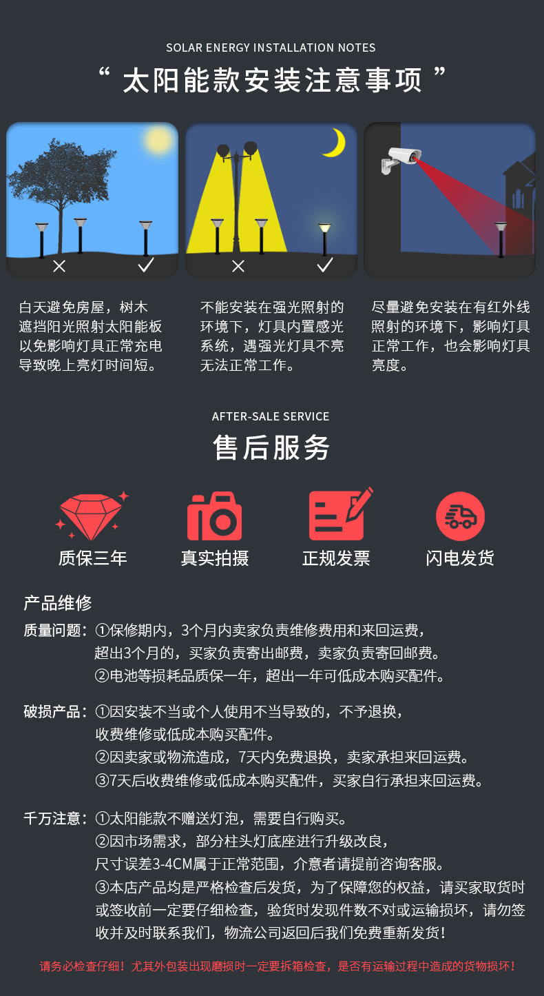 문 태양 정원 방수 안뜰 빌라 발코니 유도 야외 외벽 벽 램프 천공 기둥 무료 양면스토어 가기