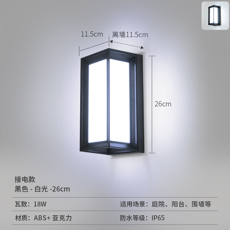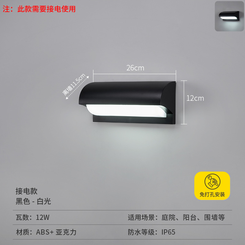 • [주택형 전기벽등 ABS] 블랙 - 전기 - 소형 26cm - 백색광 - 12W