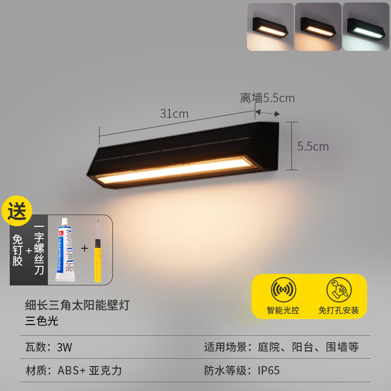 • [슬림삼각형 태양광 벽등] 솔라-블랙-31cm-3W