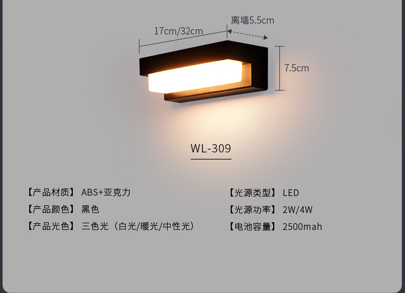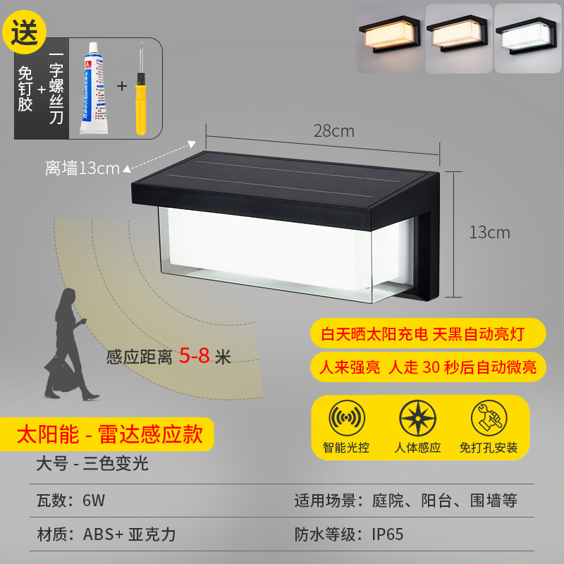 • [얇은 7자리 ABS 태양광 벽등] 태양광-블랙-17cm-2W