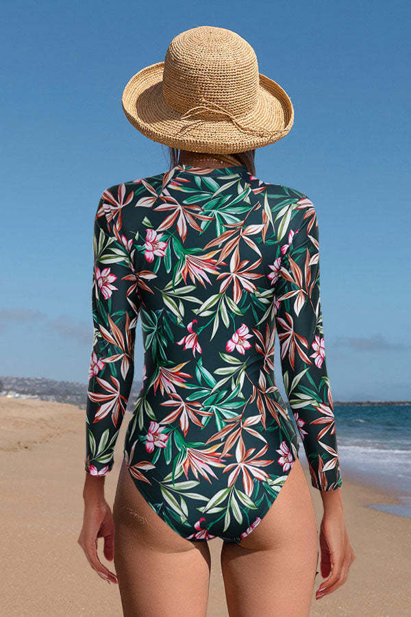 국경 간 유럽과 미국의 긴 소매 선스크린 원피스 전신 인쇄 서퍼 세트 선스크린 여성 수영복 다이빙 세트 수영복