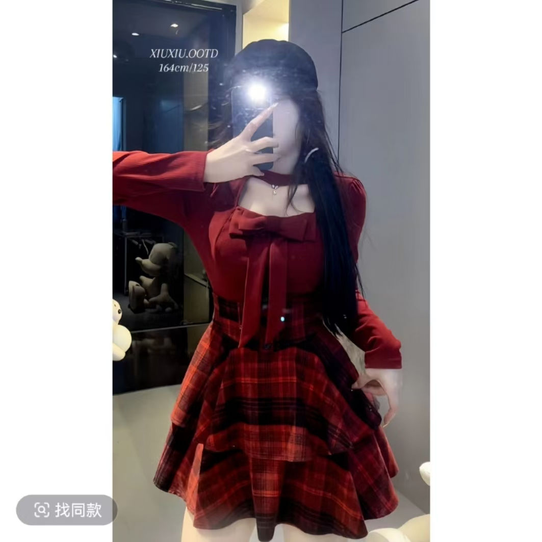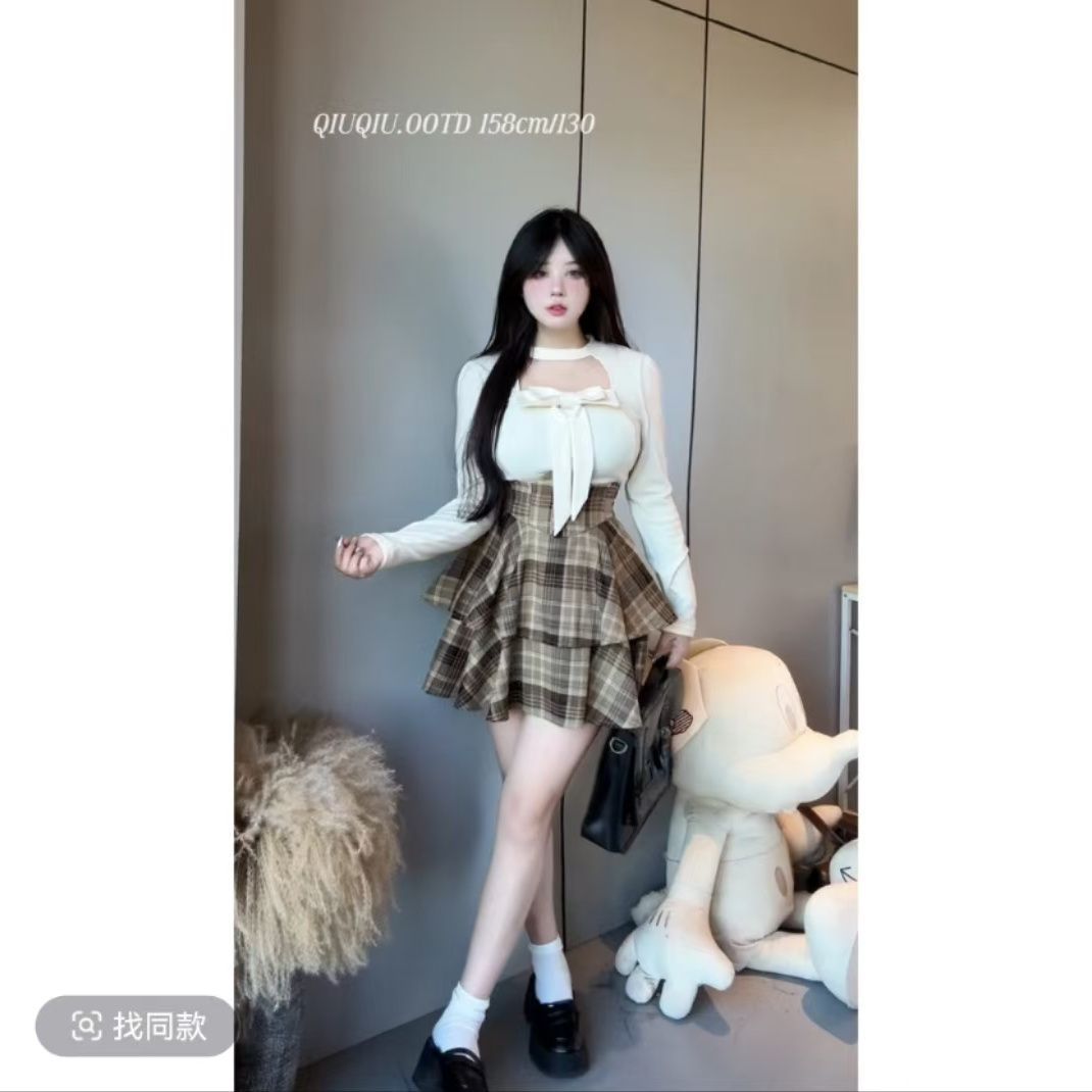 플러스 사이즈 대학 스타일 활베이스 최고 여성의 가을과 겨울 통통녀 허리 줄거리 원피스 달콤한 우아한 슬리밍 세트