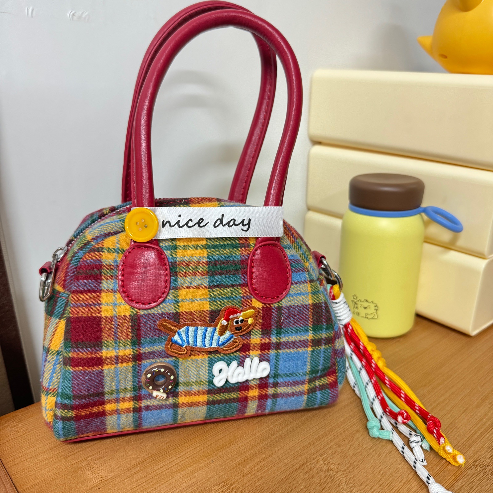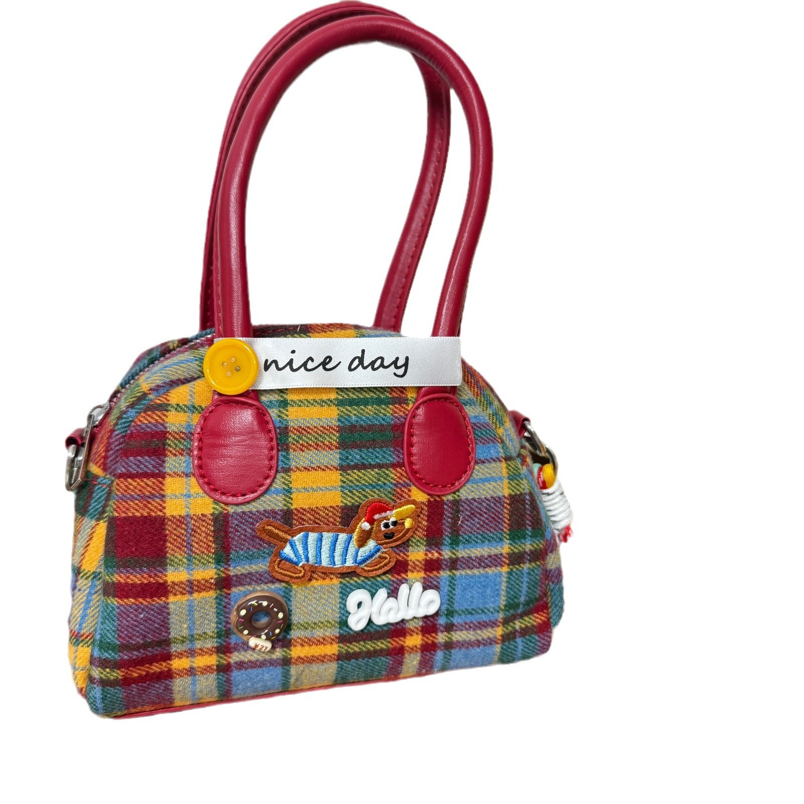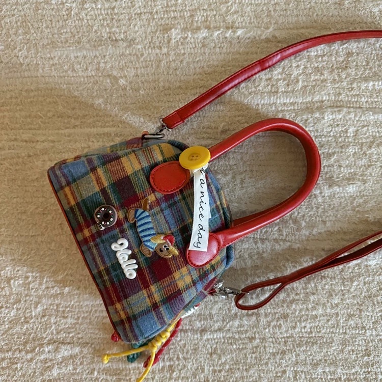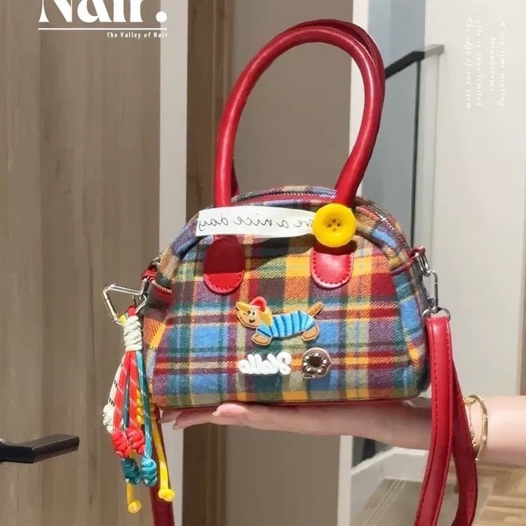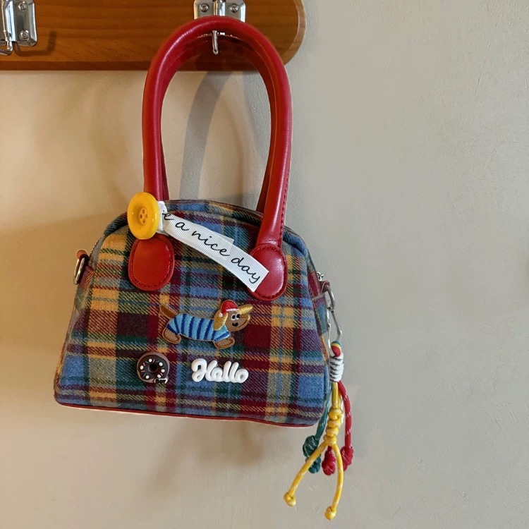 절묘한 어깨 마일라드 격자 무늬 핸드백 여성용 레트로 콘트라스트 컬러 닥스 훈트 개 한국 스타일 절묘한 핸드백 크로스 바디 백