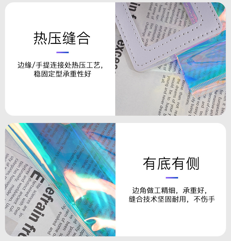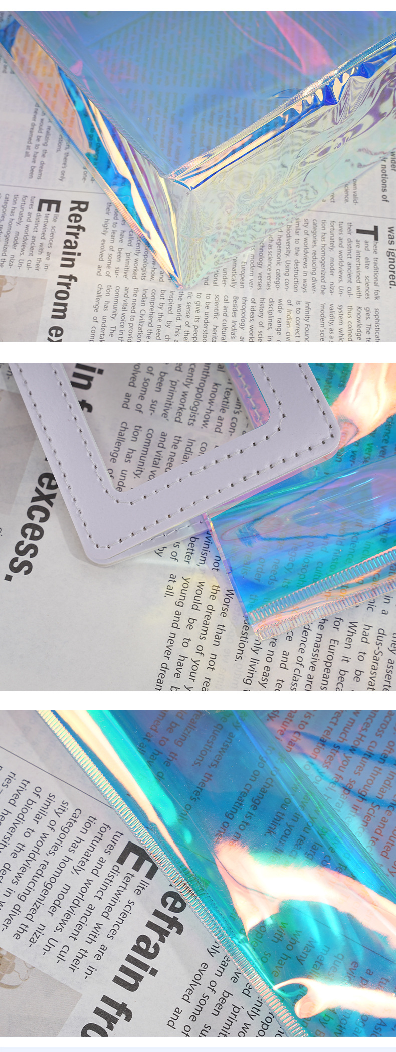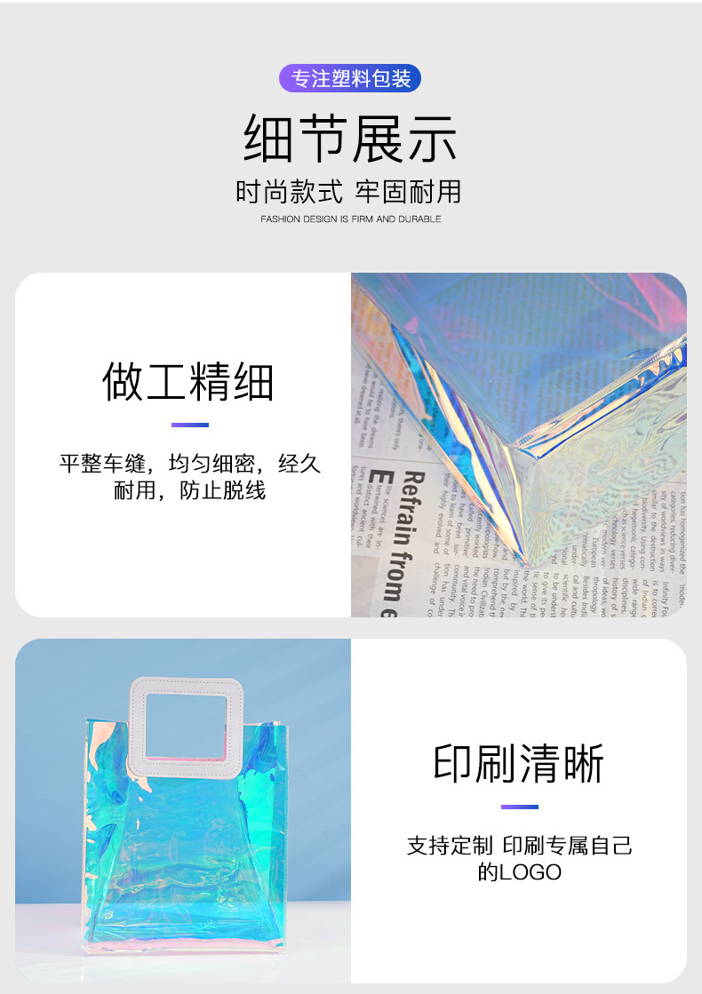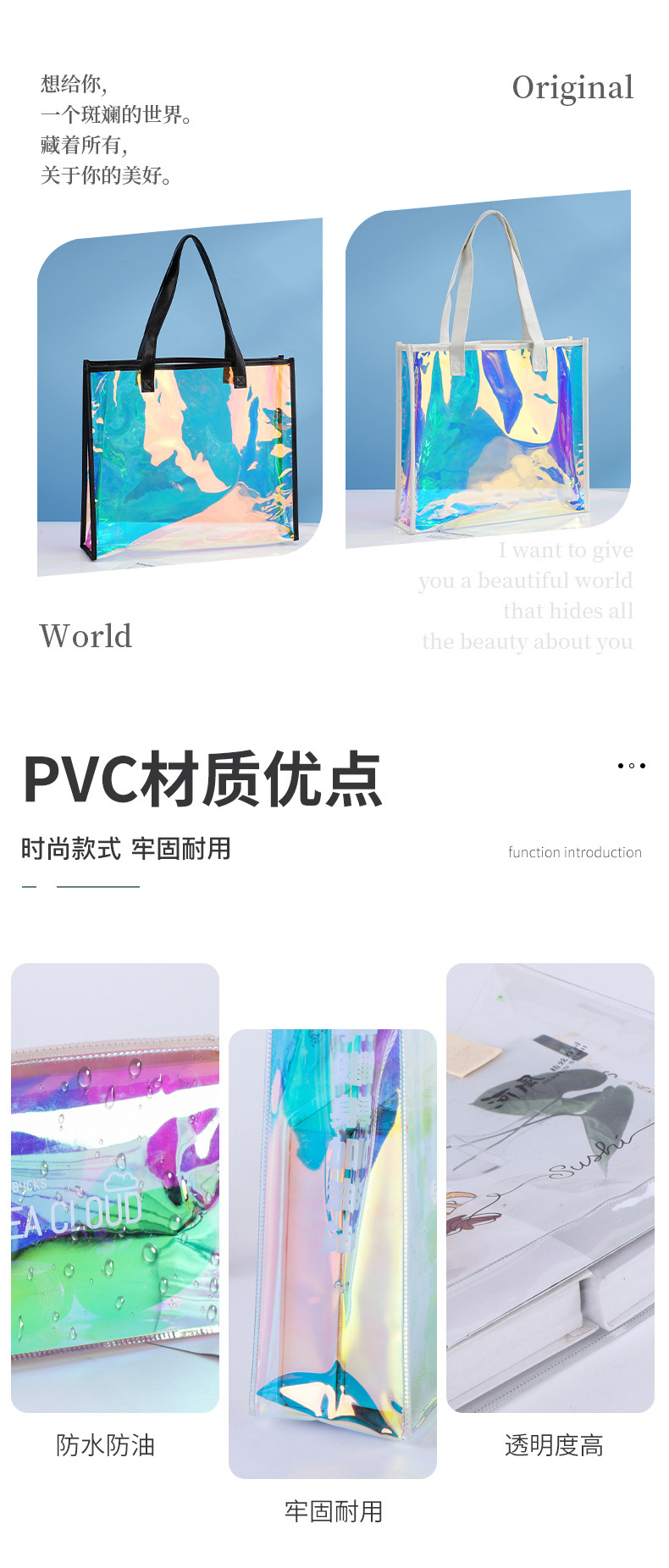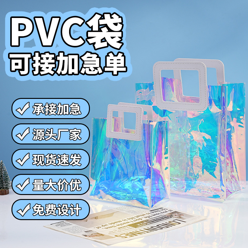 재고 도매 pvc 투명 레이저 토트 백 사용자 정의 로고 인쇄 높은 감각 레이저 선물 선물 가방스토어 가기