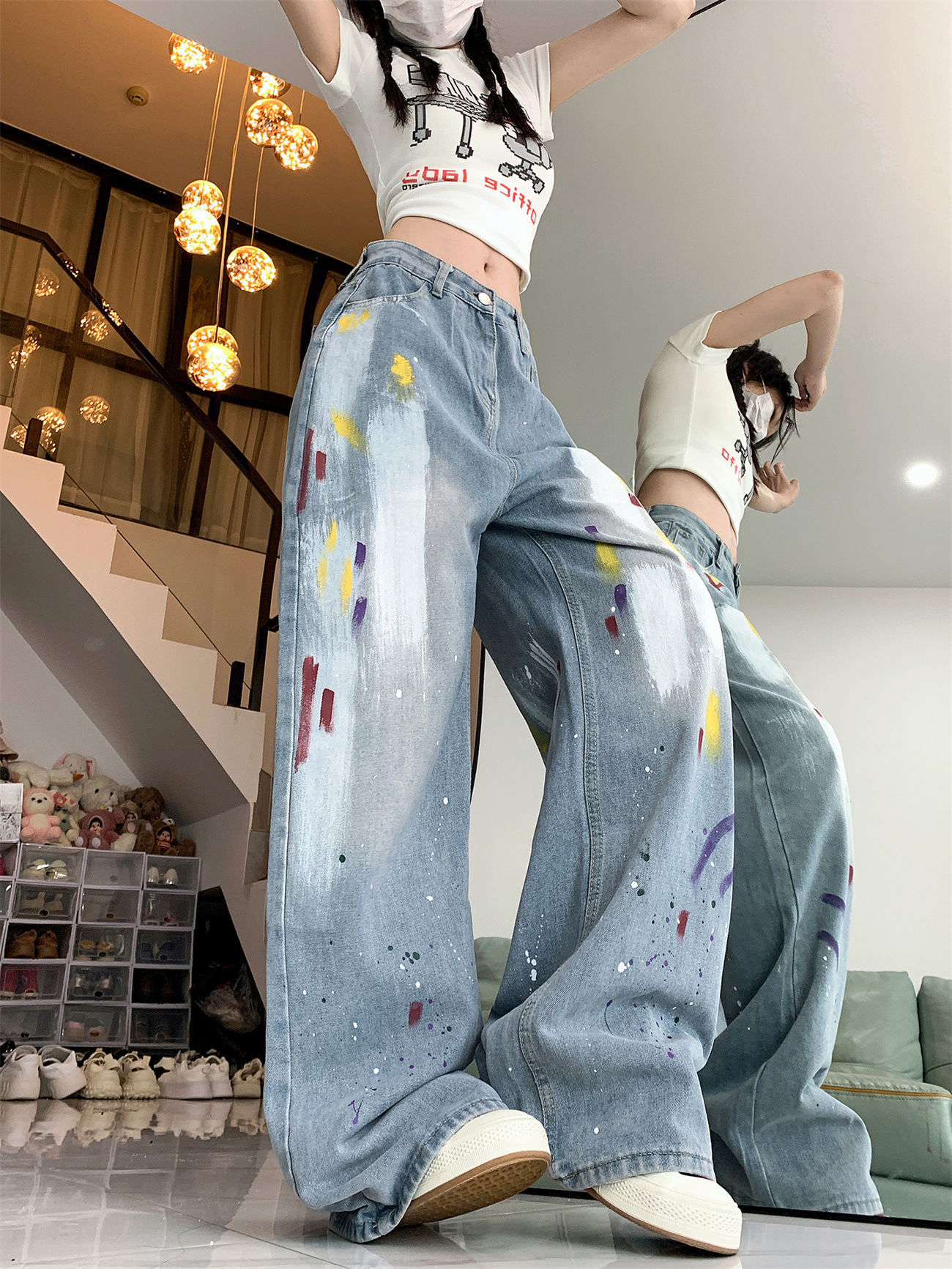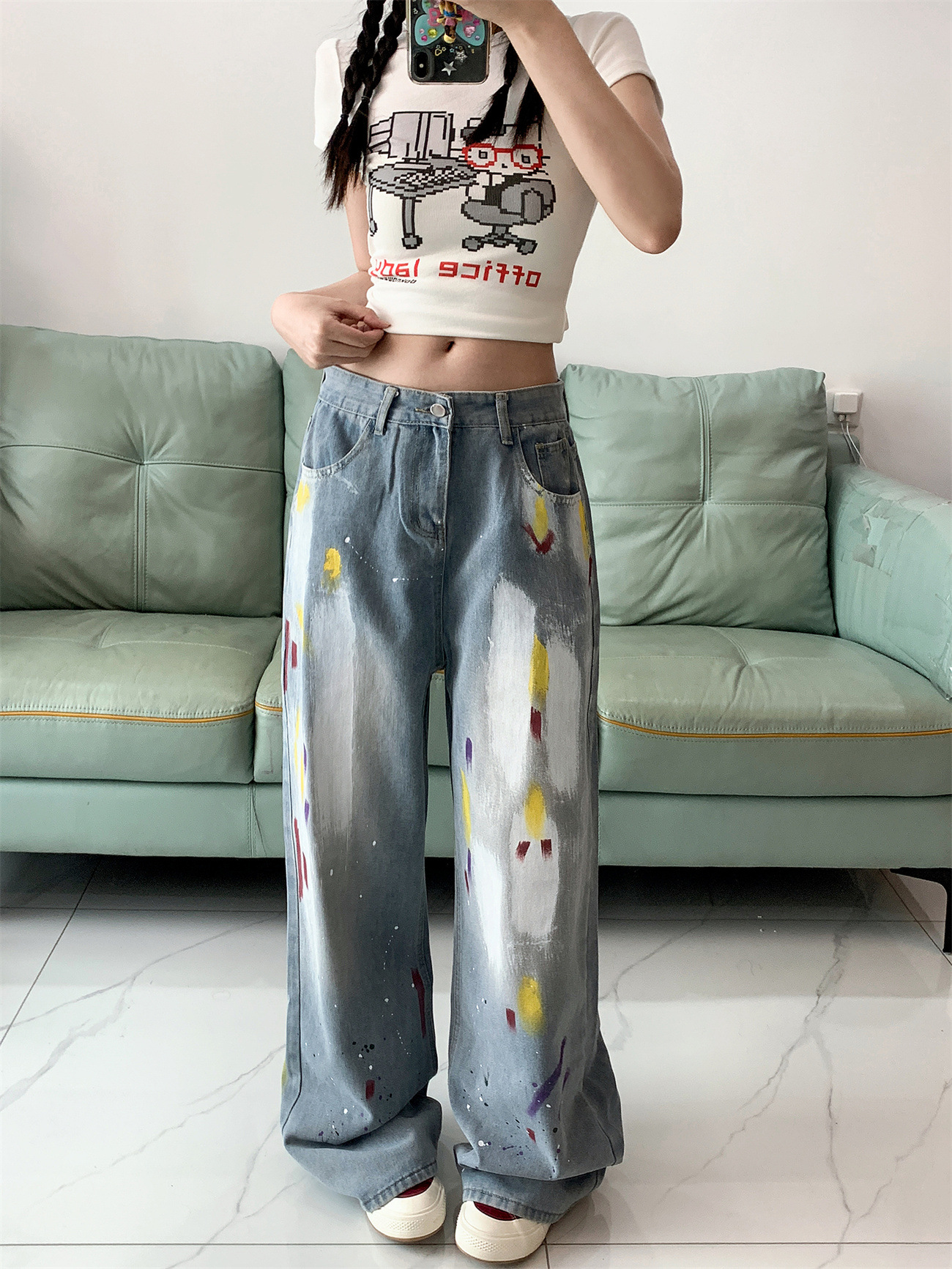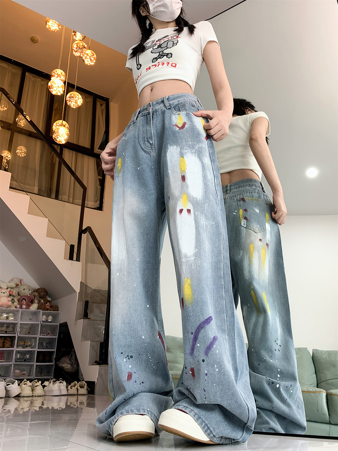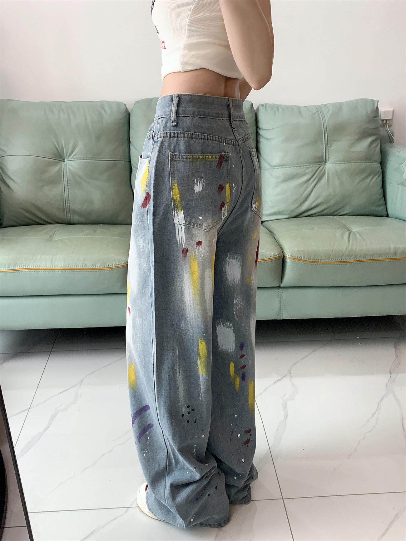 봄과 가을 남성용 트렌디 한 루즈 스트레이트 청바지 헤비 샌드 워시 빈티지 캐주얼 데님 바지 남성용 블랙 부트 바지스토어 가기