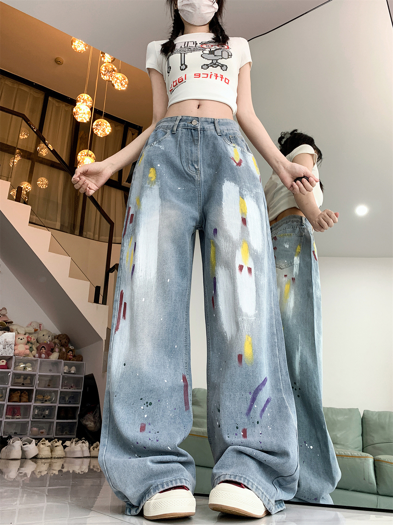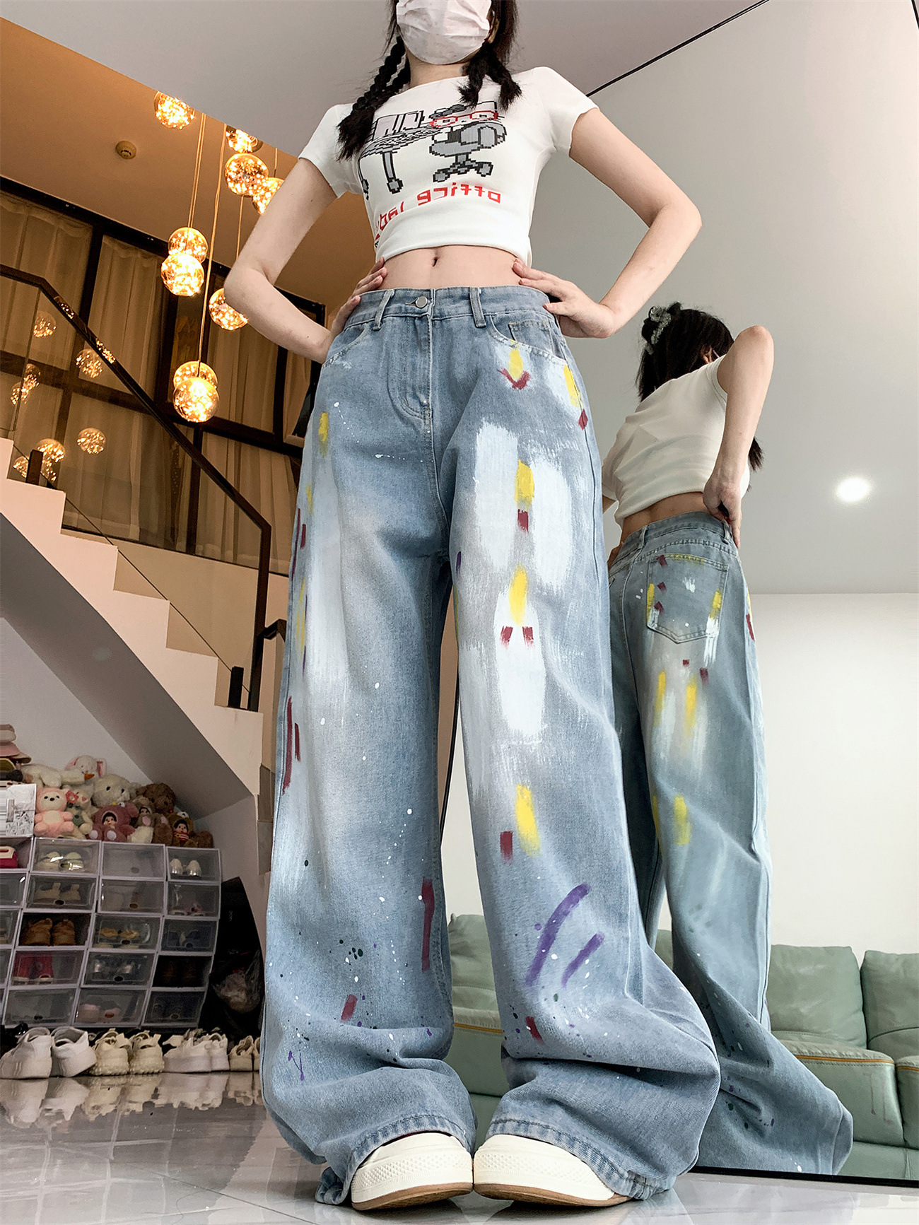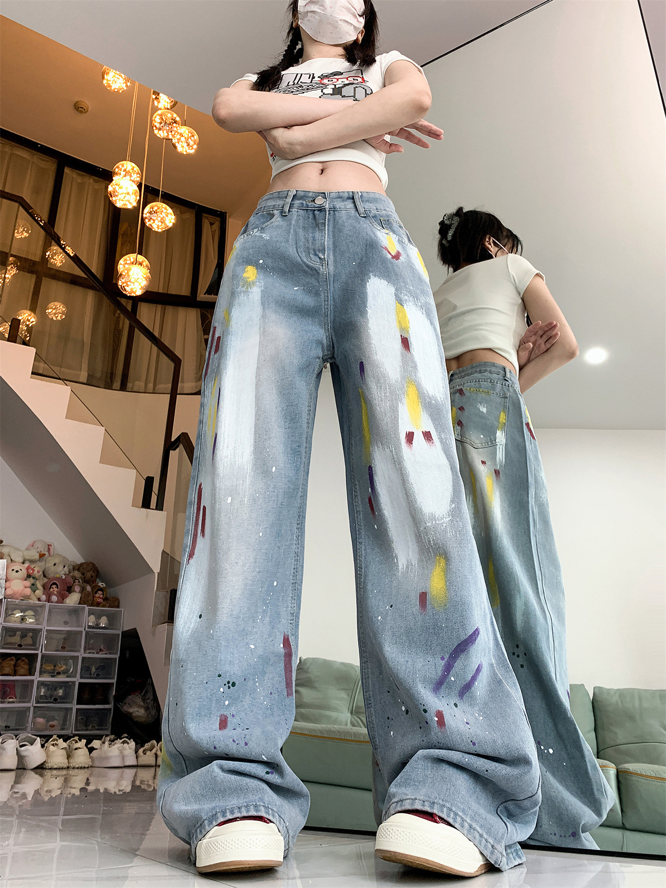 봄과 가을 남성용 트렌디 한 루즈 스트레이트 청바지 헤비 샌드 워시 빈티지 캐주얼 데님 바지 남성용 블랙 부트 바지스토어 가기