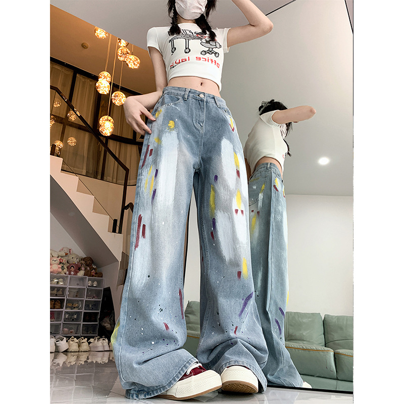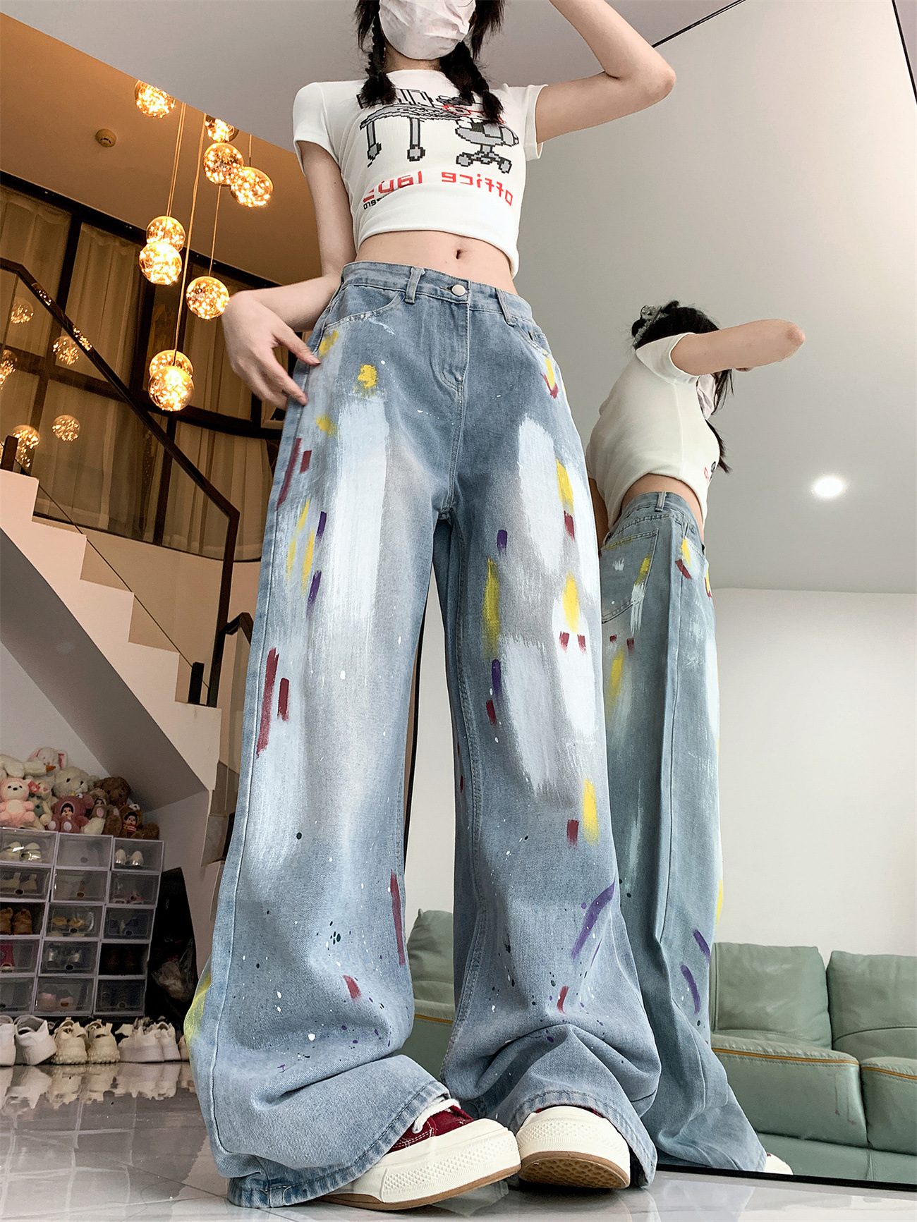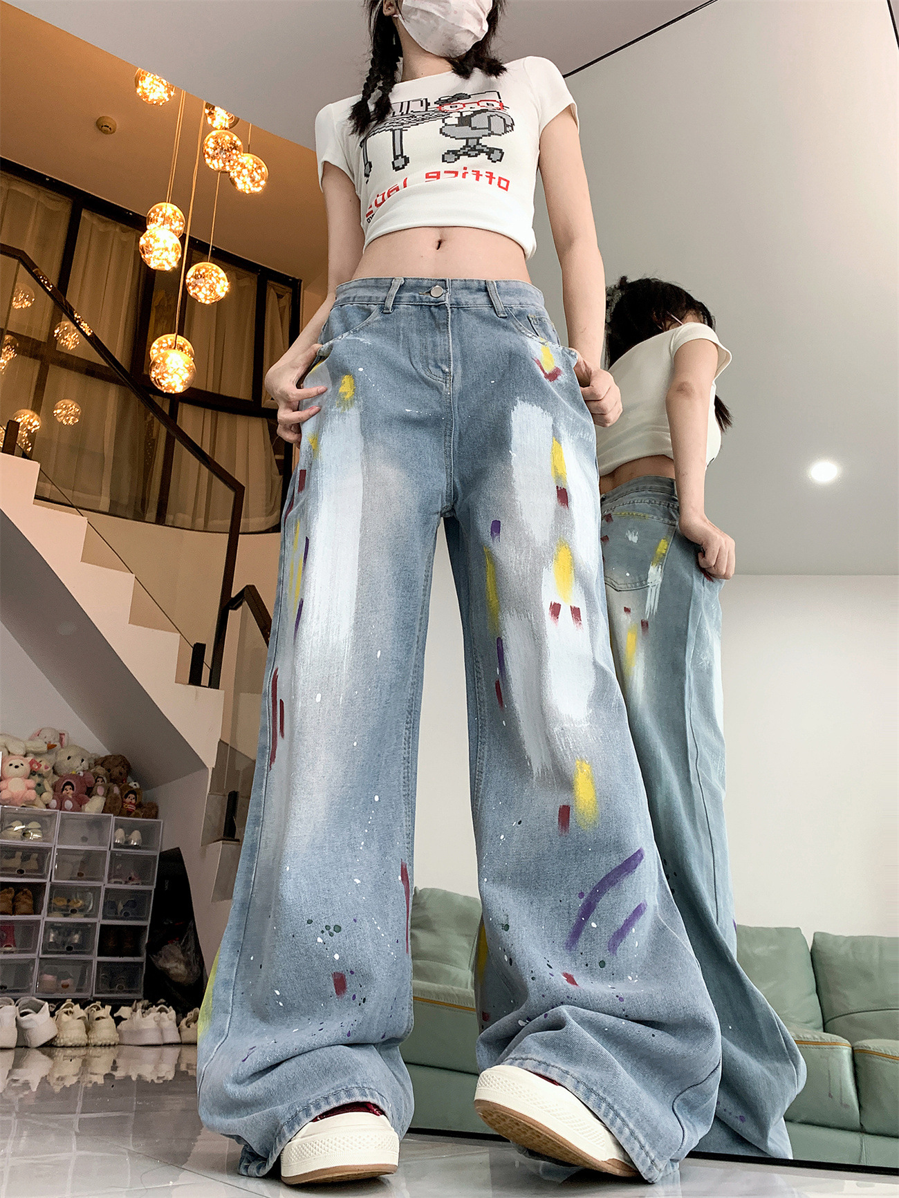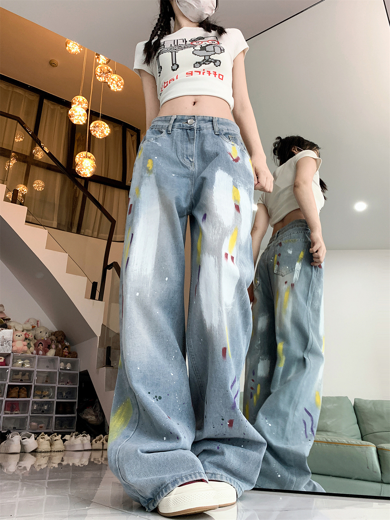 봄과 가을 남성용 트렌디 한 루즈 스트레이트 청바지 헤비 샌드 워시 빈티지 캐주얼 데님 바지 남성용 블랙 부트 바지스토어 가기