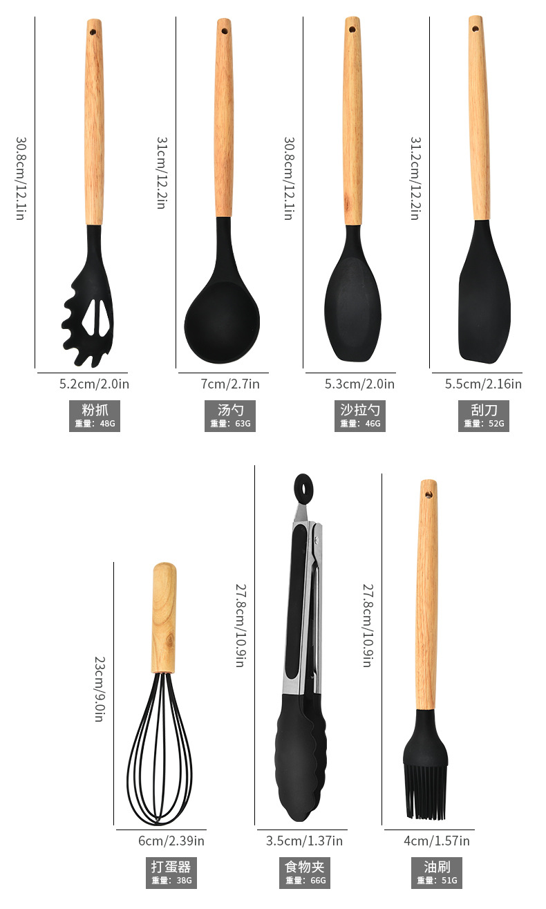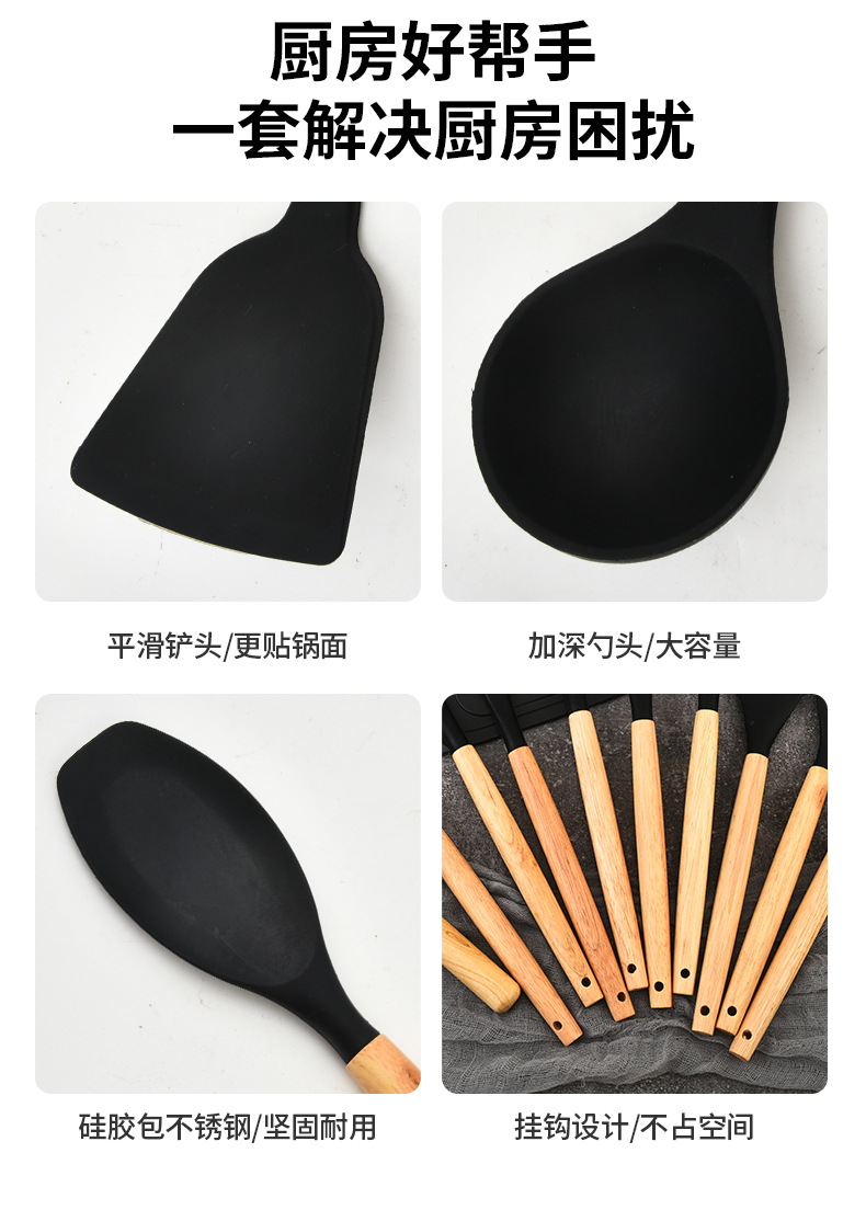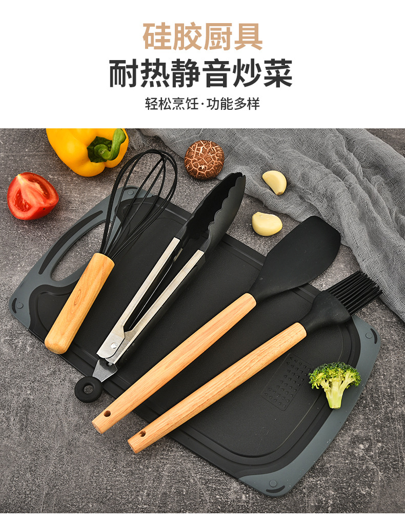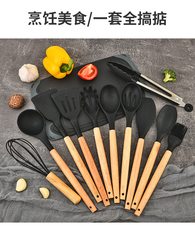 공장 도매 실리콘 주방용품 19 조각 세트 비 스틱 커터 세트 가정용 주방용품 삽 스푼 요리 도구 도마스토어 가기