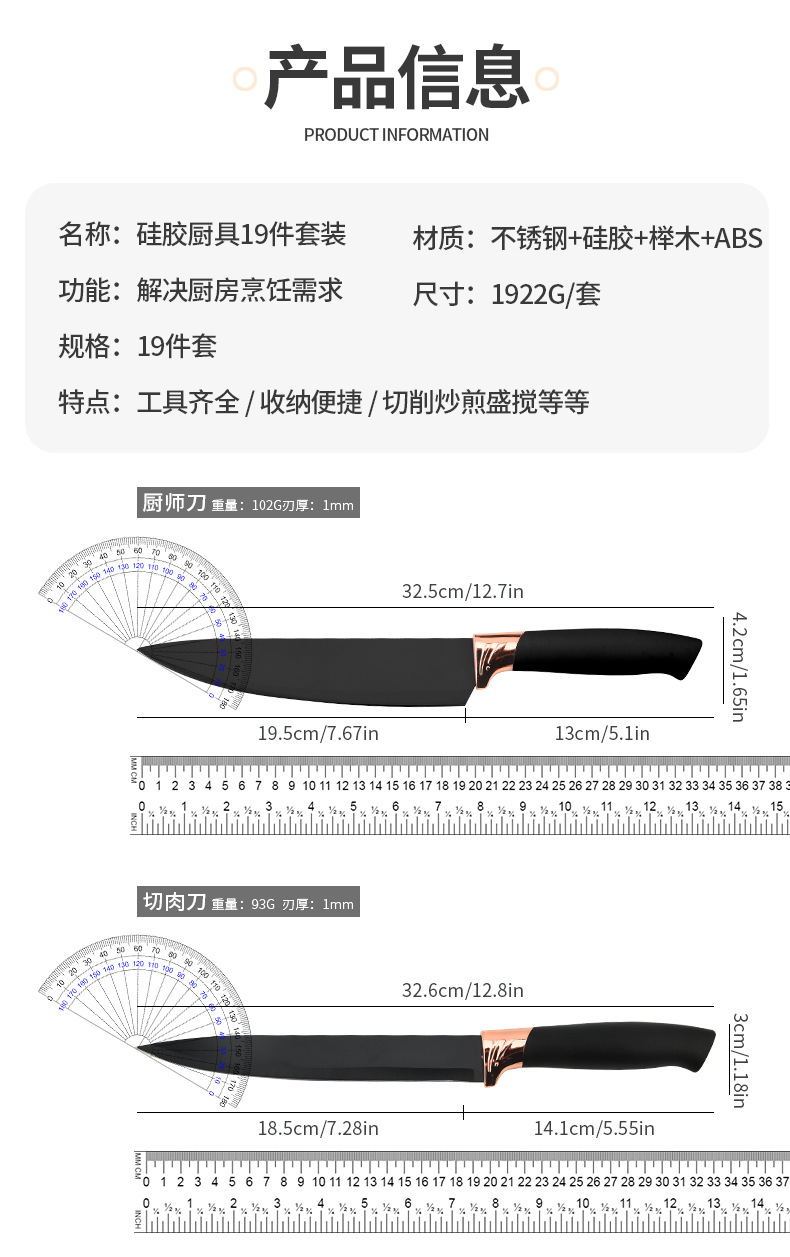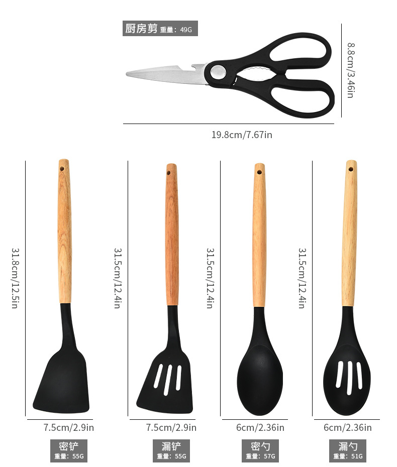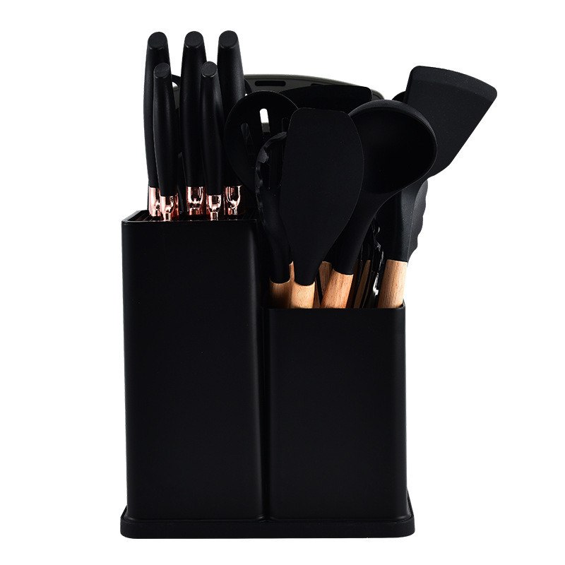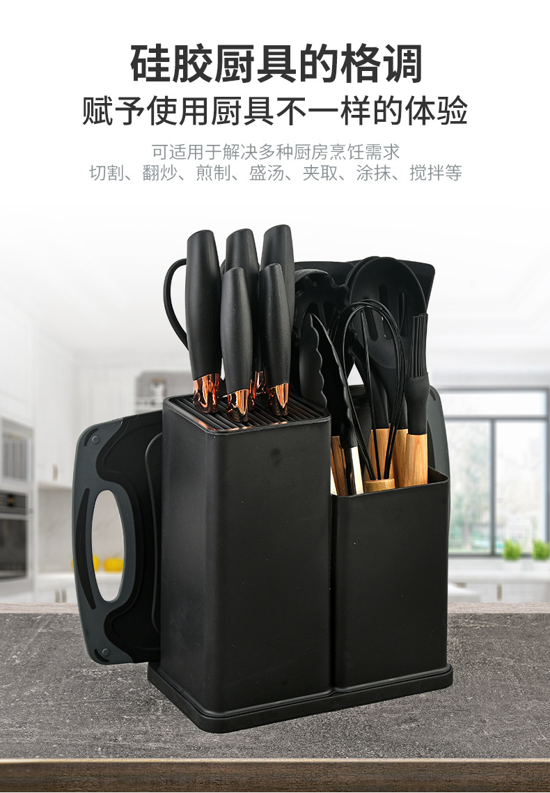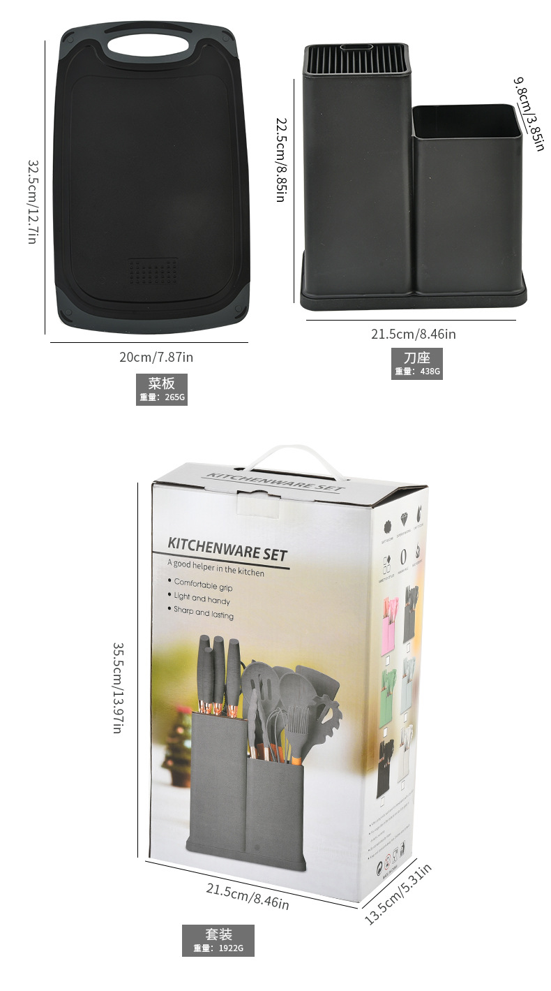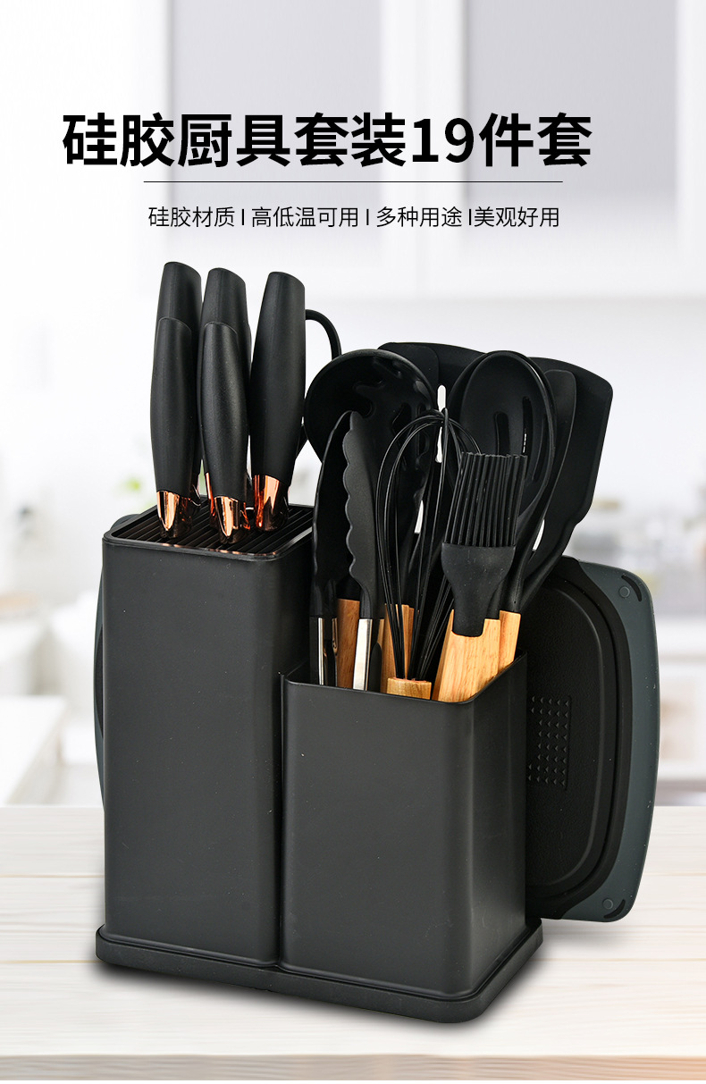 공장 도매 실리콘 주방용품 19 조각 세트 비 스틱 커터 세트 가정용 주방용품 삽 스푼 요리 도구 도마