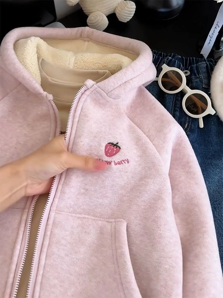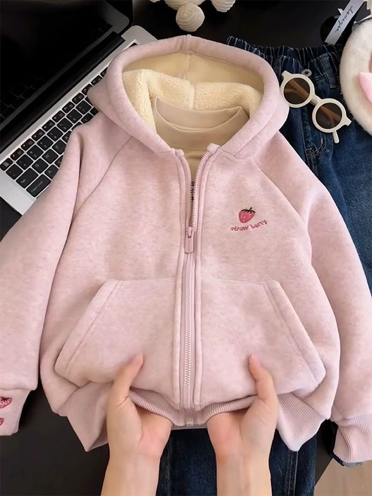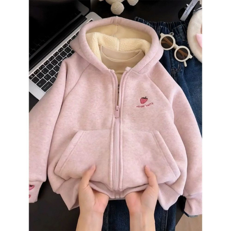 어린이 착용 겨울 소녀의 알파카 모피 재킷 여성 기모 두껍게 2024 새로운 스타일의 중학생 여성용 후드 스웨트 셔츠스토어 가기