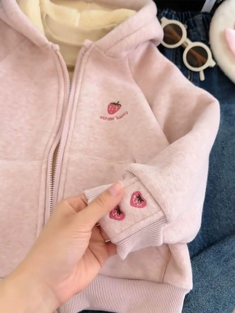 어린이 착용 겨울 소녀의 알파카 모피 재킷 여성 기모 두껍게 2024 새로운 스타일의 중학생 여성용 후드 스웨트 셔츠